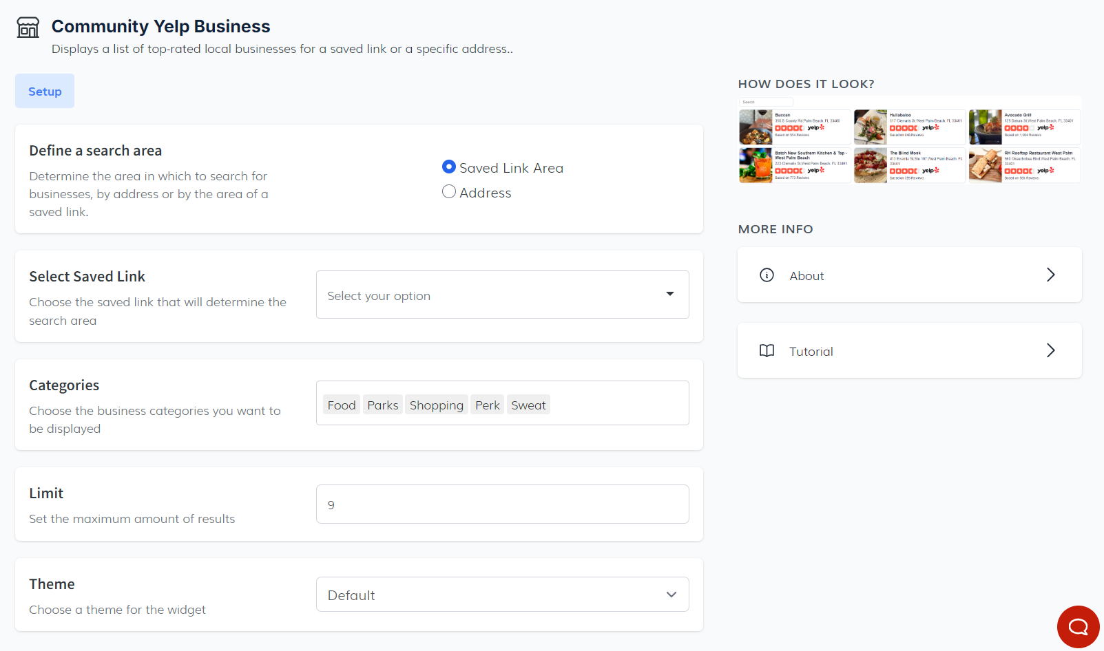 Community Yelp Business Widget