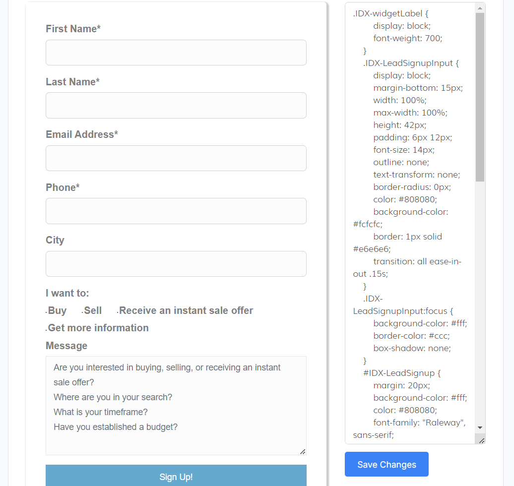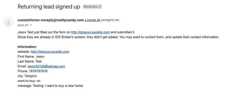 With the Sign Up Custom Form widget, you’ll receive an email with the submitted lead's data, allowing you to verify and update it in IDX Broker. Additionally, this information will be added to the lead's notes automatically.