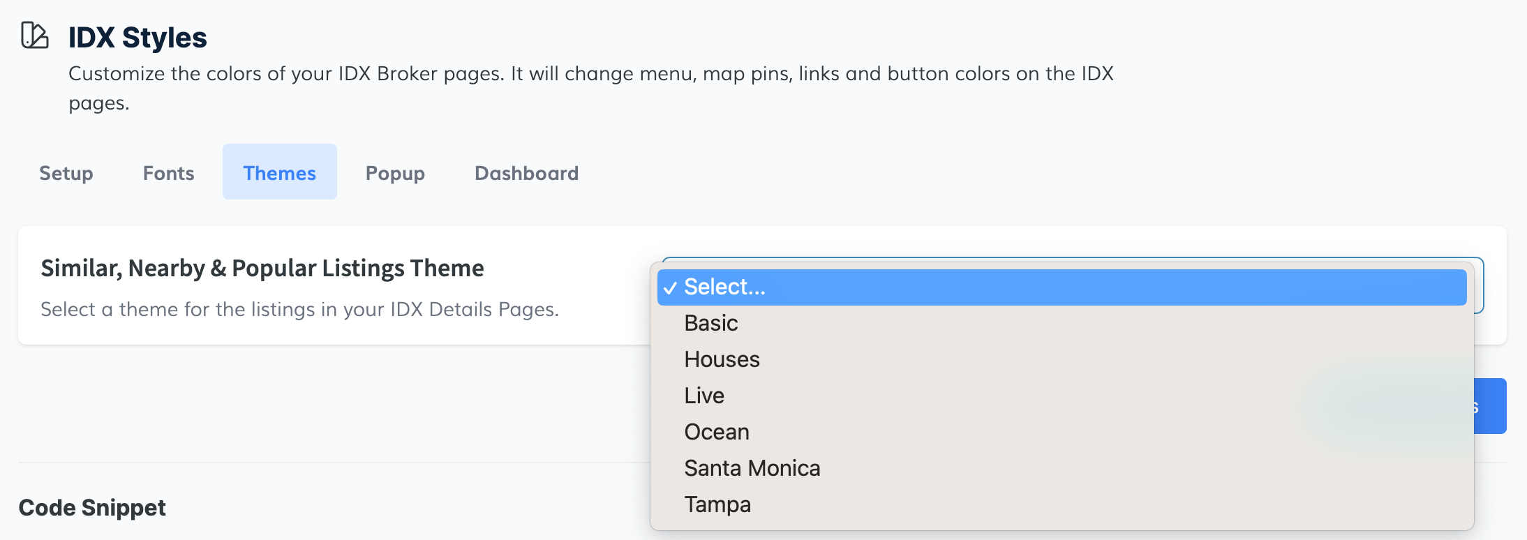 Change fonts, select themes for IDX listing pages (Similar, Nearby, and Popular Listings), and even personalize the registration popup and user dashboard with themes that resonate with your brand.