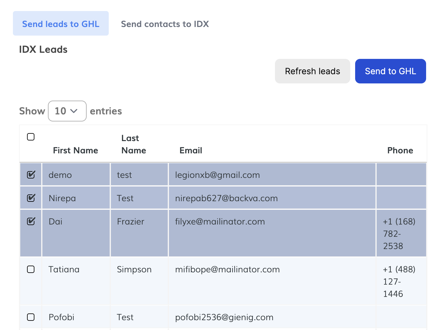You also have the option to manually select the IDX Broker leads you want to export to LeadConnector.