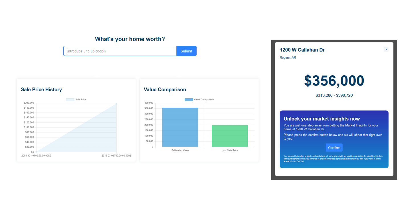 The Home Valuation Widget provides a quick and reliable home value estimate based on real-time market data. Additionally, the widget offers a lead capture feature that enables users to receive an SMS with their estimated home value and market analysis.