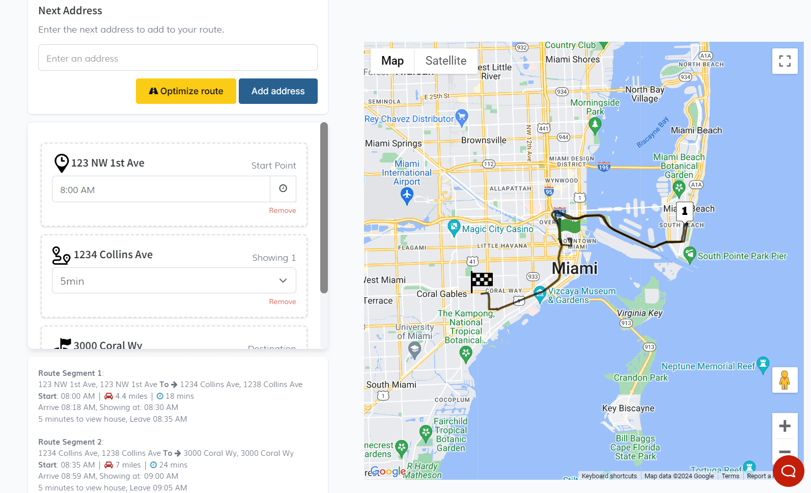 Add addresses to get the optimal route for a showing tour.