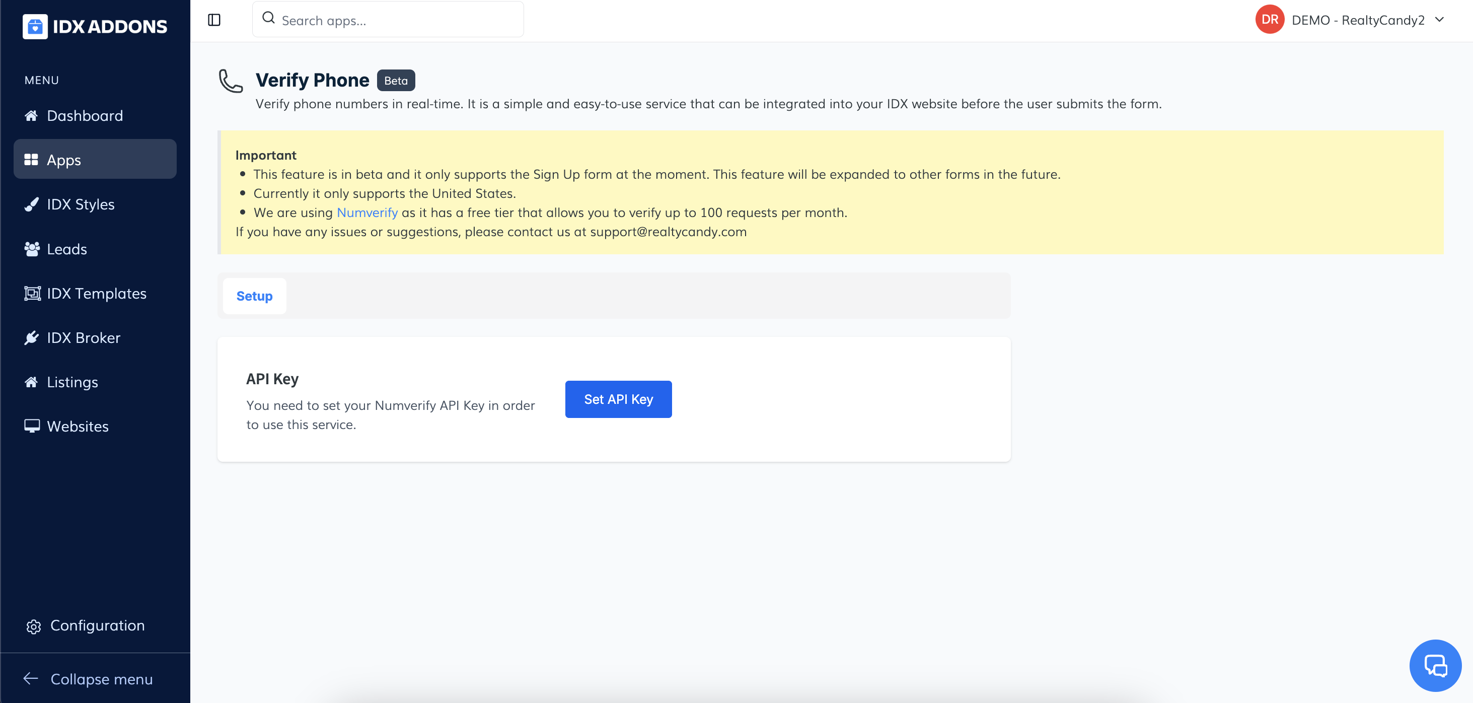 Reduce fake submissions by adding a phone number validation step before a user completes your IDX Broker lead form. With this app, you can connect to Numverify to check if the number provided is real, helping you filter out obvious spam or invalid data early in the process.