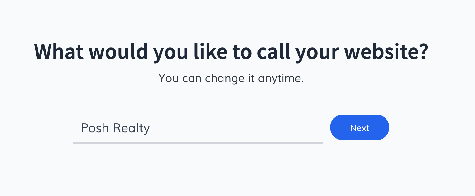 A popup will appear with the Website Name prefilled. You can change the name if desired.