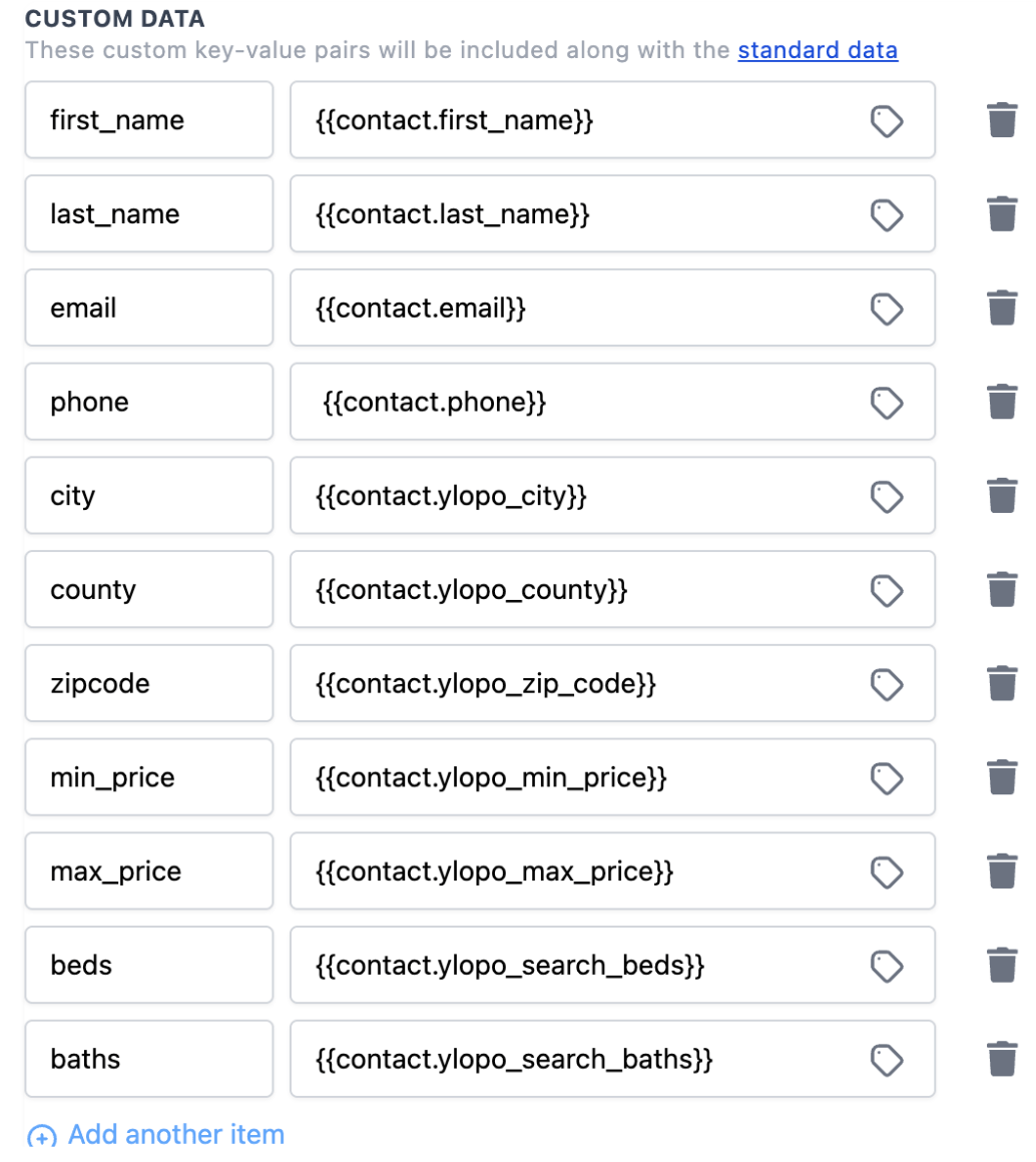Custom Data:You will pass the following fields with the new custom fields that will store the CRM search criteria