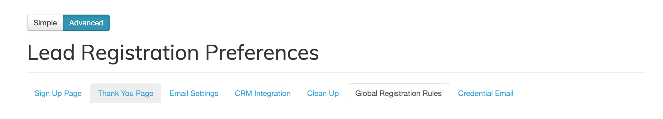 On this screen, you’ll find two options for configuring registration rules: Simple and Advanced.