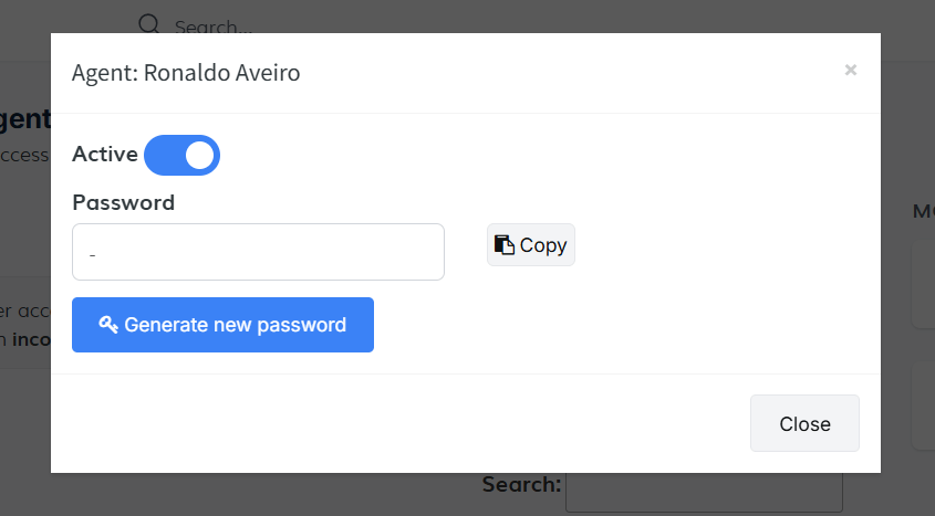 - In the popup that appears, turn on the "Active" switch to enable access for this agent.
