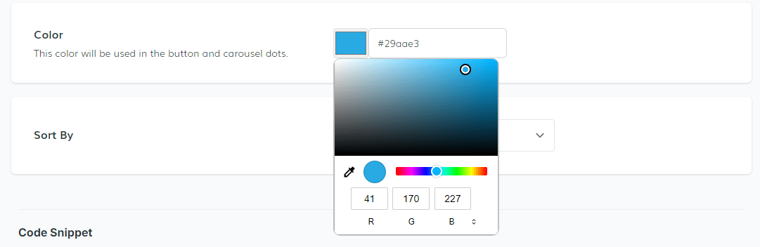 Choose a color for the carousel buttons and dots using the color selection option.