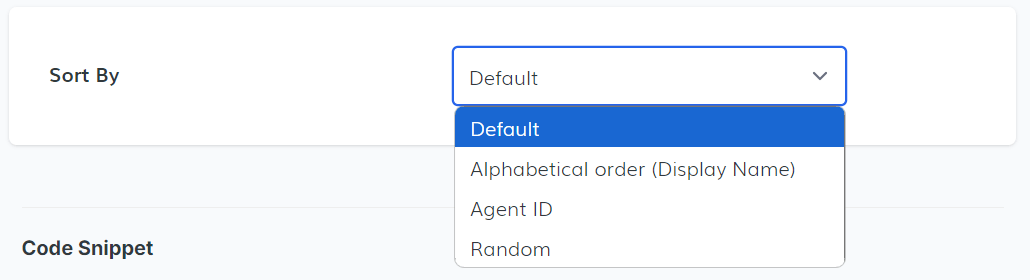 The Sort By option allows you to organize agents in several ways: default, alphabetical order, Agent ID, or random.