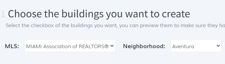 Use the checkbox on the left to select the buildings to which you want to create a saved link. This table will update depending on the MLS and neighborhood selected.