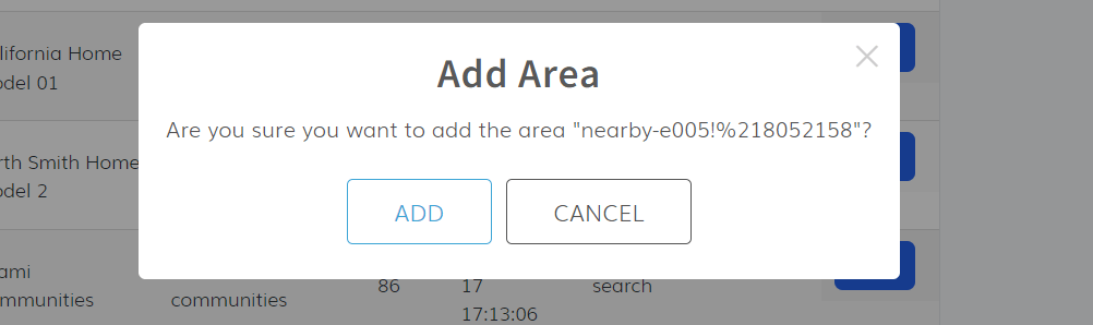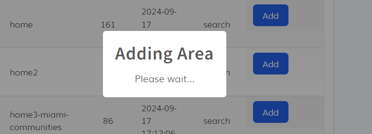 - Click "Add" to confirm, and a message will notify you that the area is being added.