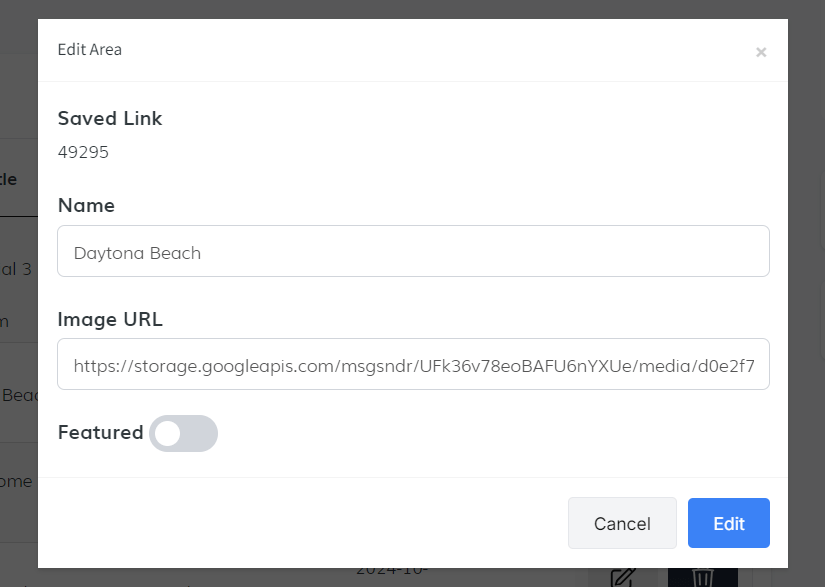 - Featured Area: If the area is marked as featured, this will be indicated.