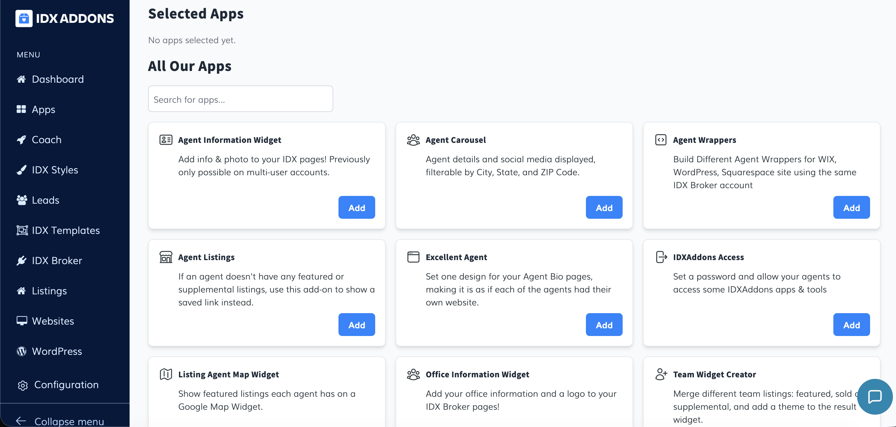 When entering the app, you must select the apps you want to have in your dashboard.