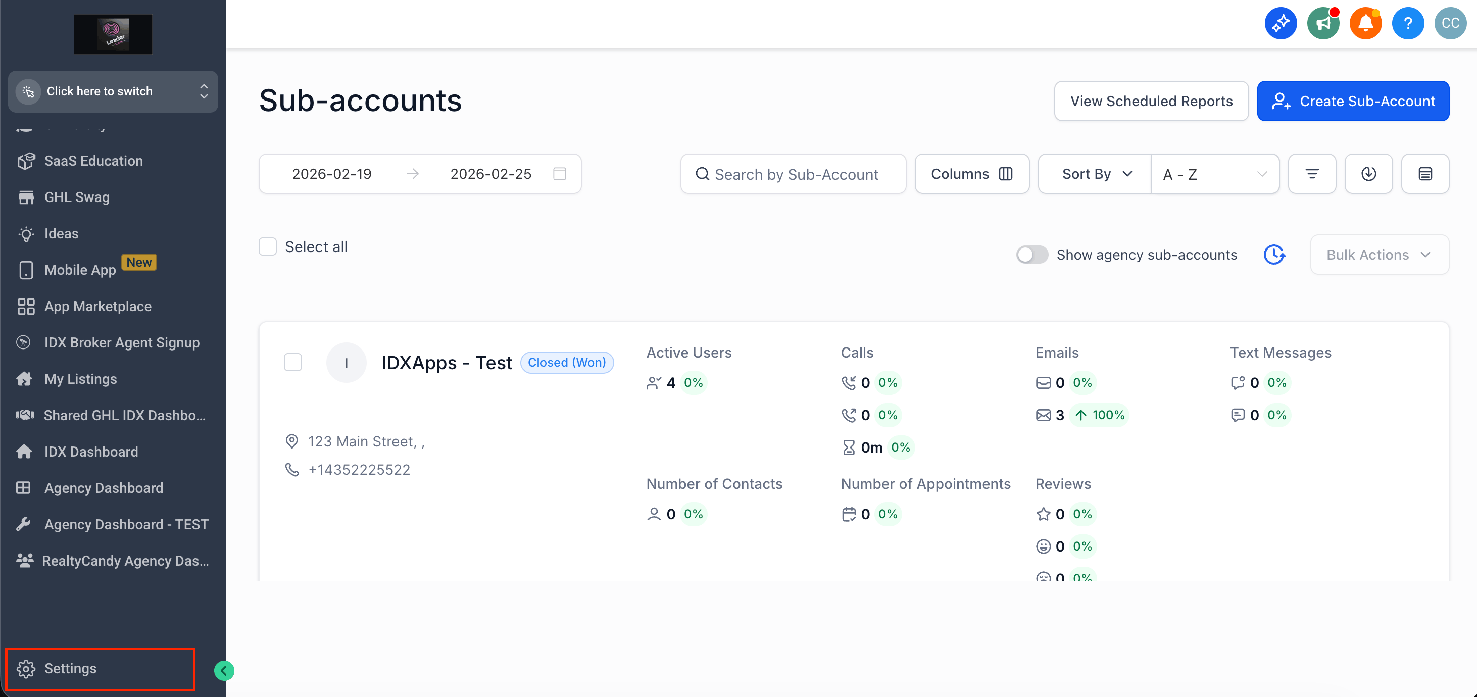 Go to the dashboard of the Sub-account you are using.