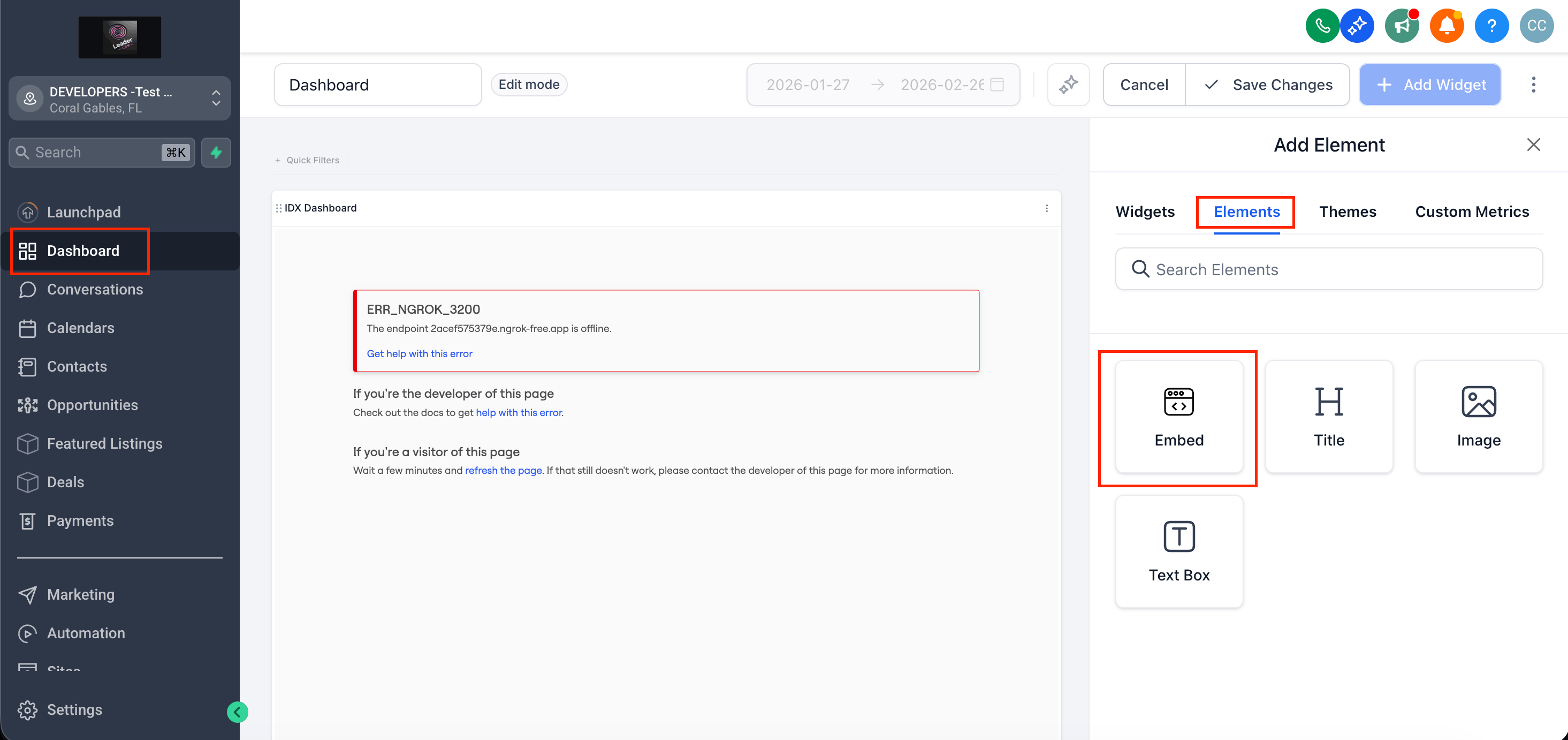 Add the Custom Dashboard as a Widget