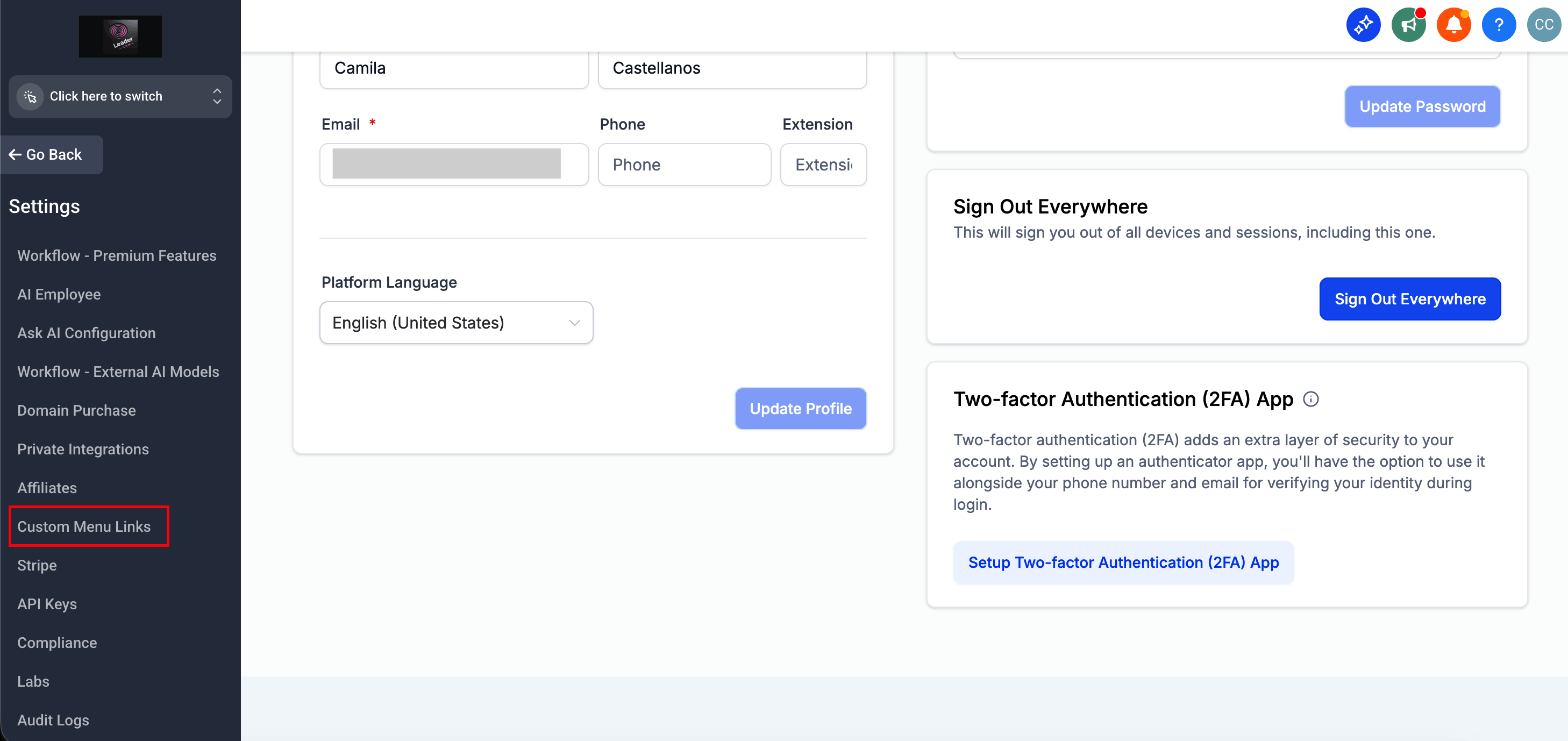 Create a Custom Menu Link in HighLevel