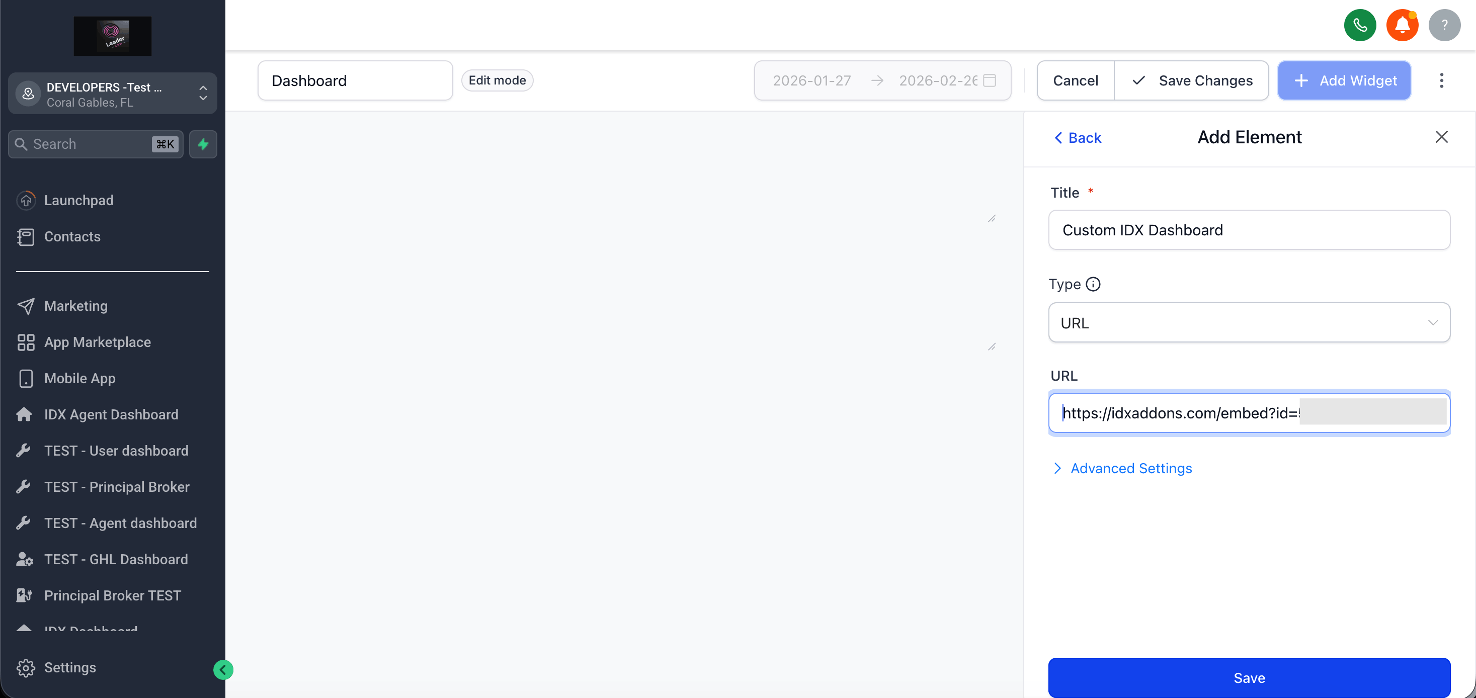 - Paste the Custom Dashboard URL.