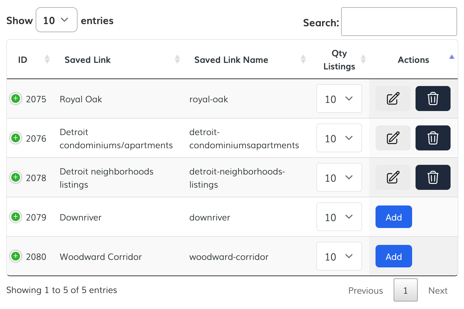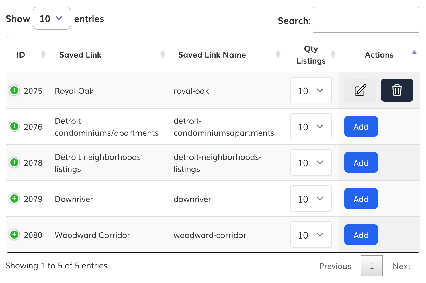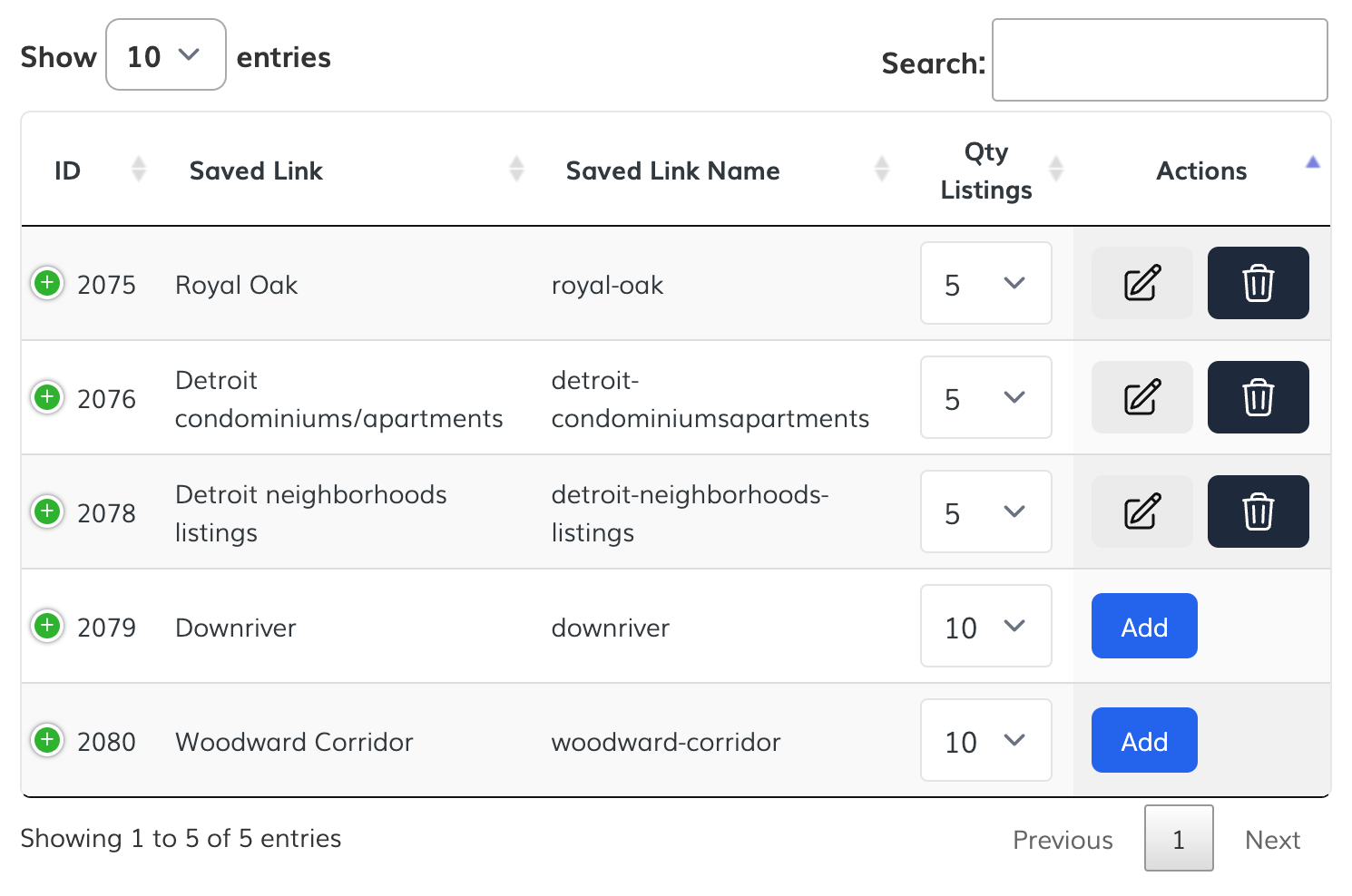 If you want to update the number of listings per Saved Link in the XML file, change the number on the Qty. Listings column.