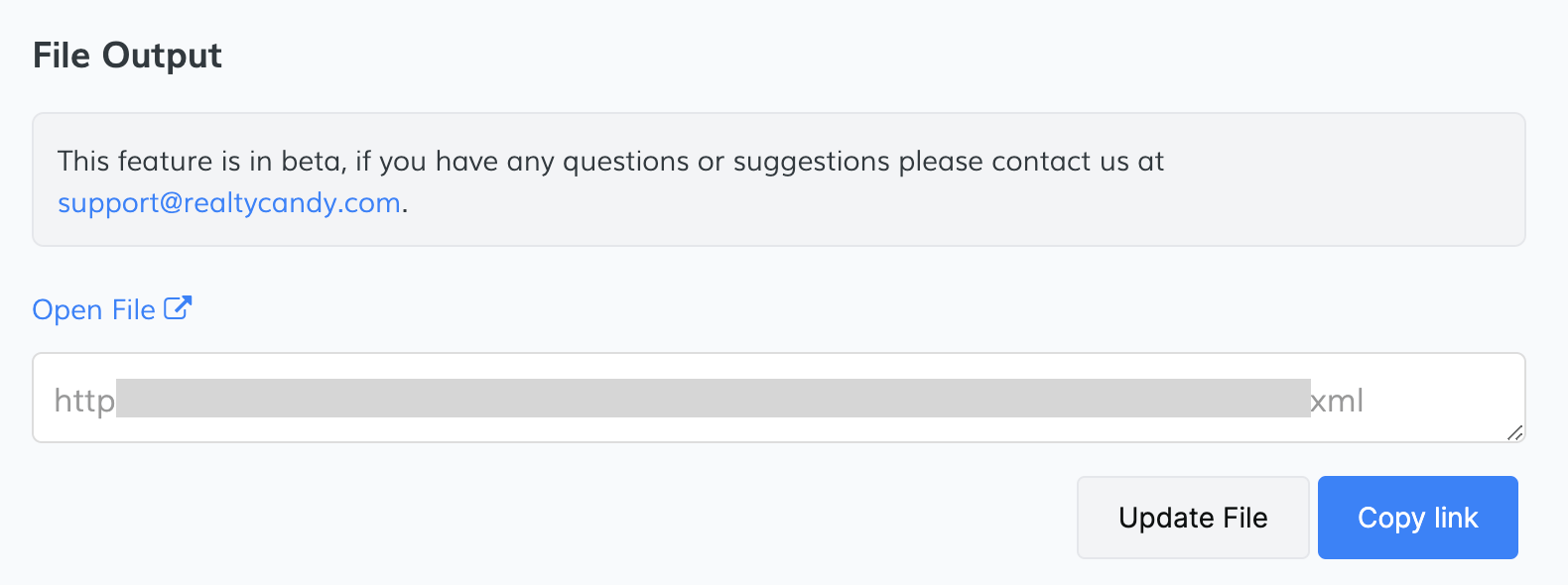Once you have updated the number of listings, click on the "Update File" button to generate the XML feed again.
