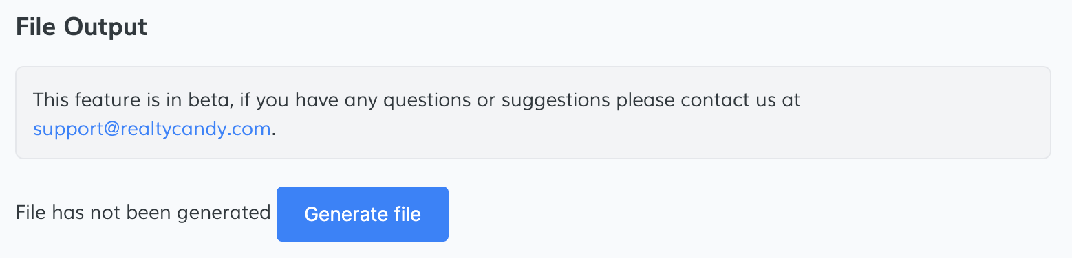 At the bottom of the page, you will see the "Generate file" button. Click on it to generate the XML feed.