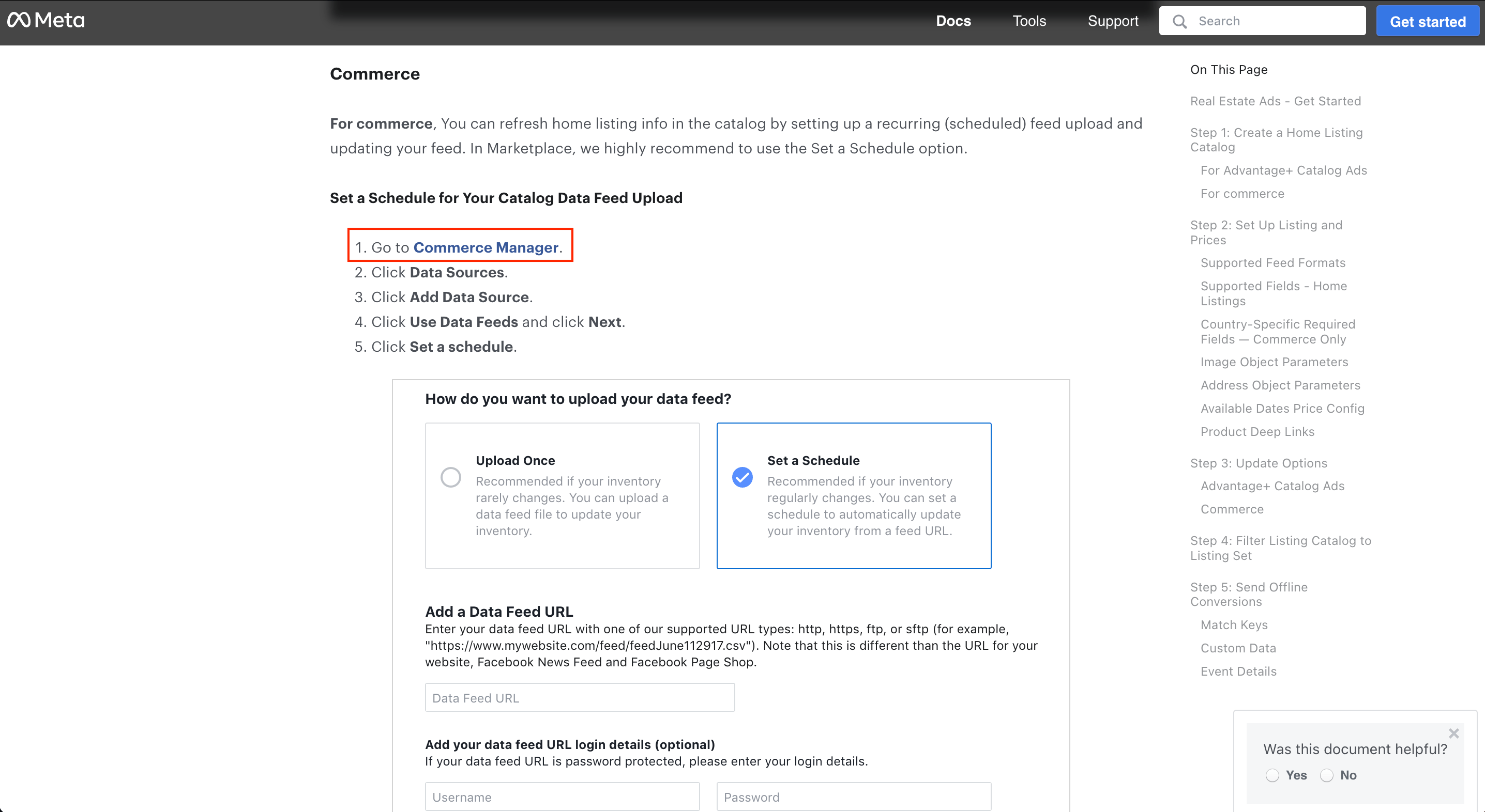 Go to FB Real Estate Ads and scroll down to the section Set a Schedule for Your Catalog Data Feed Upload.