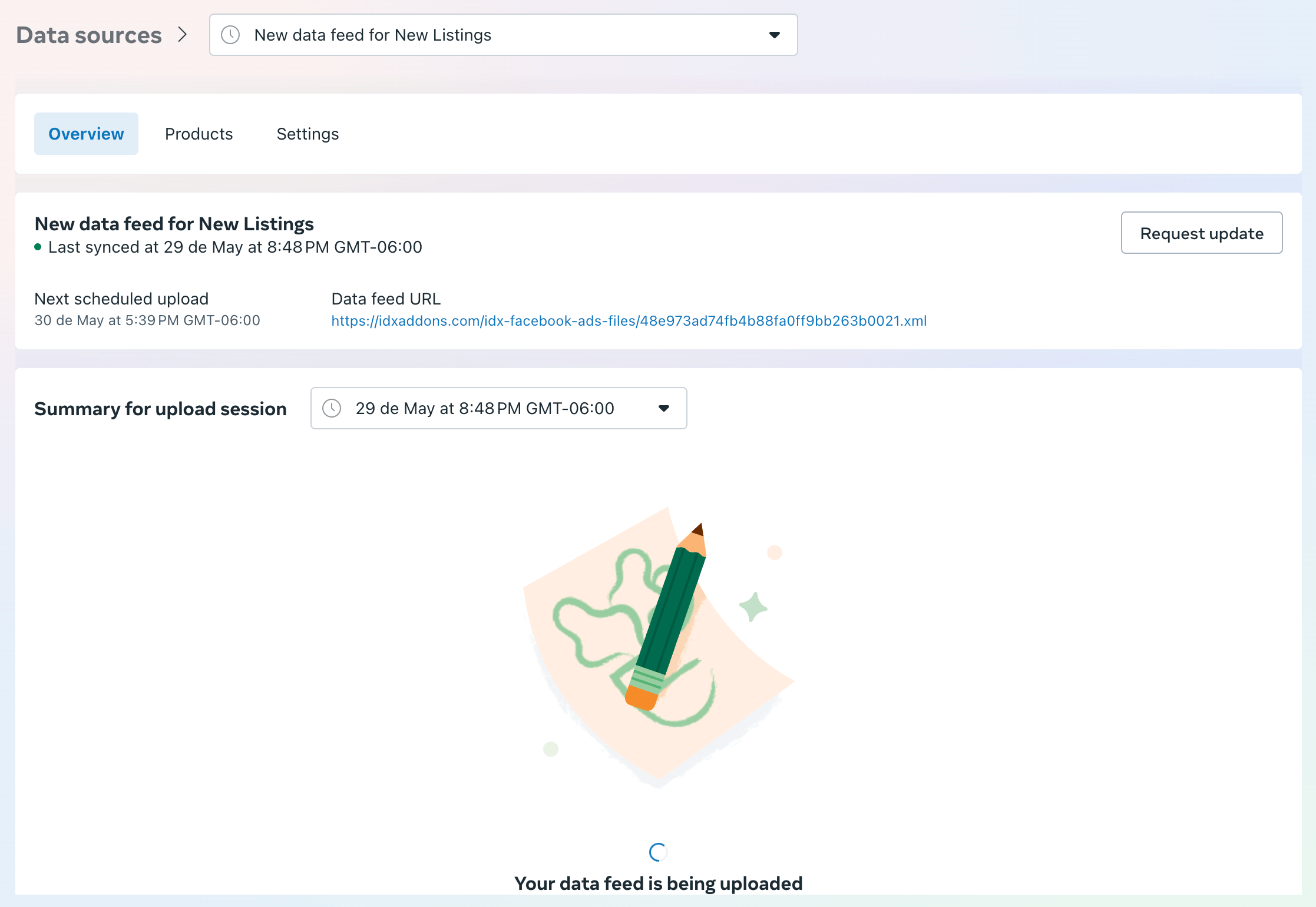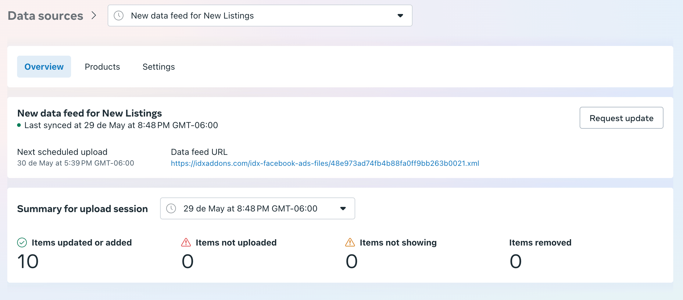 In the Products tab, you will see the listings from the XML feed.