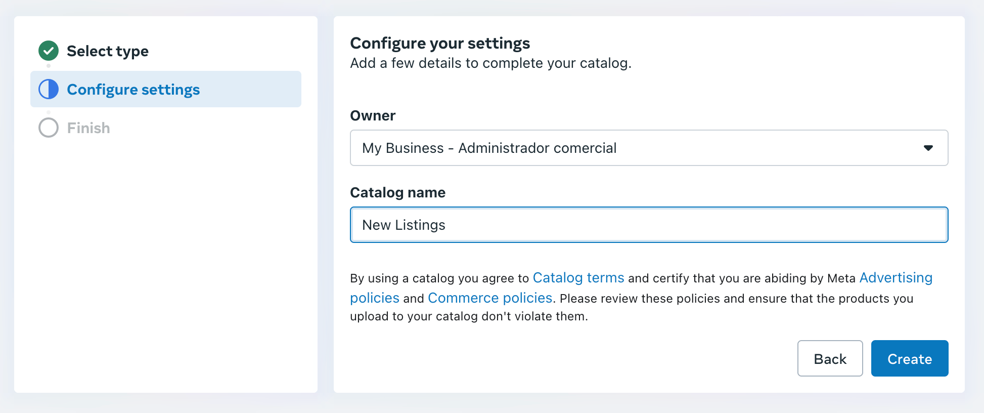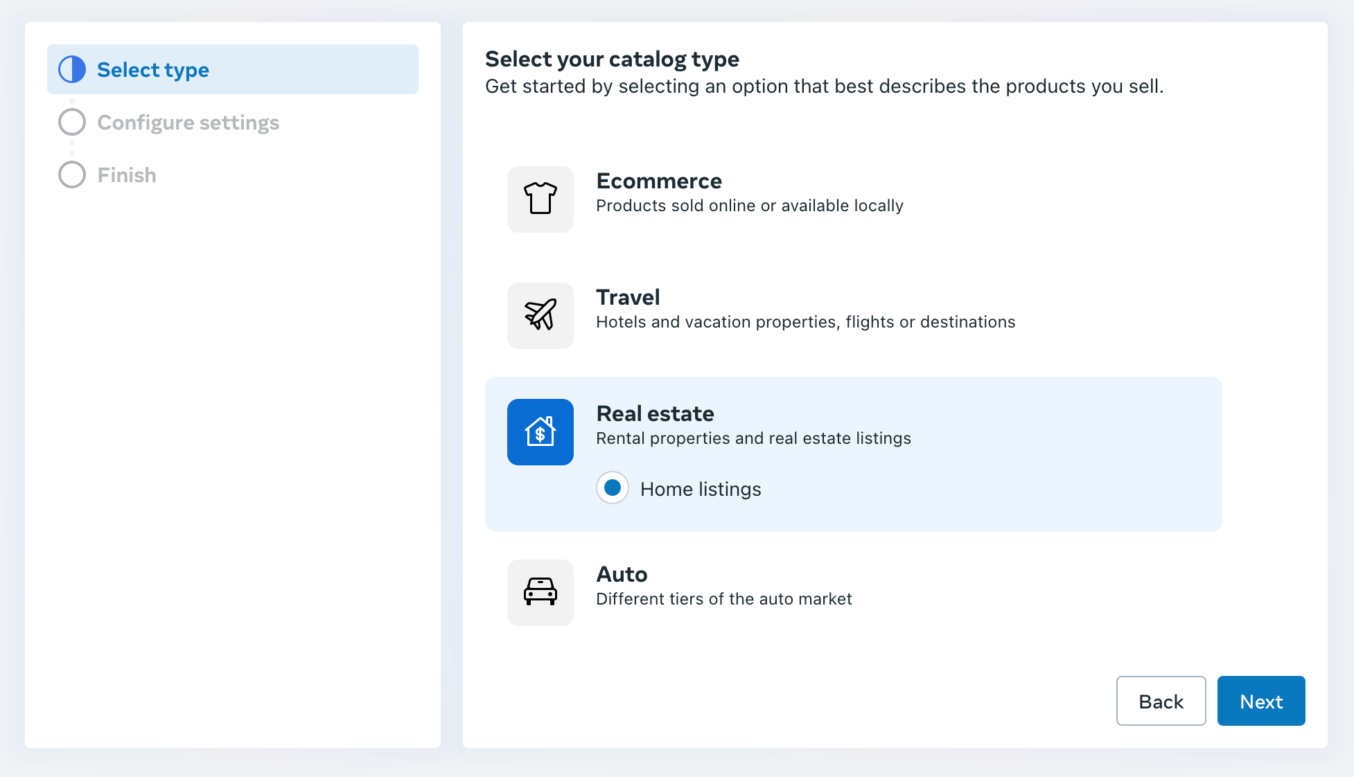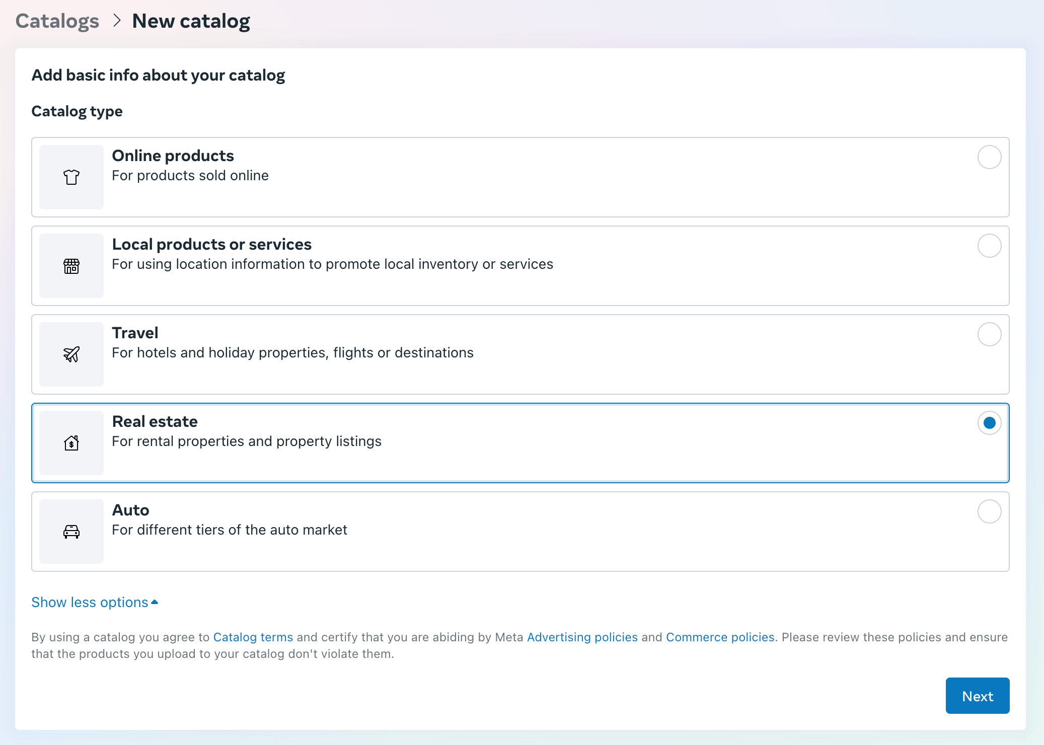 Select again Real estate as the catalog type and then click on Next.