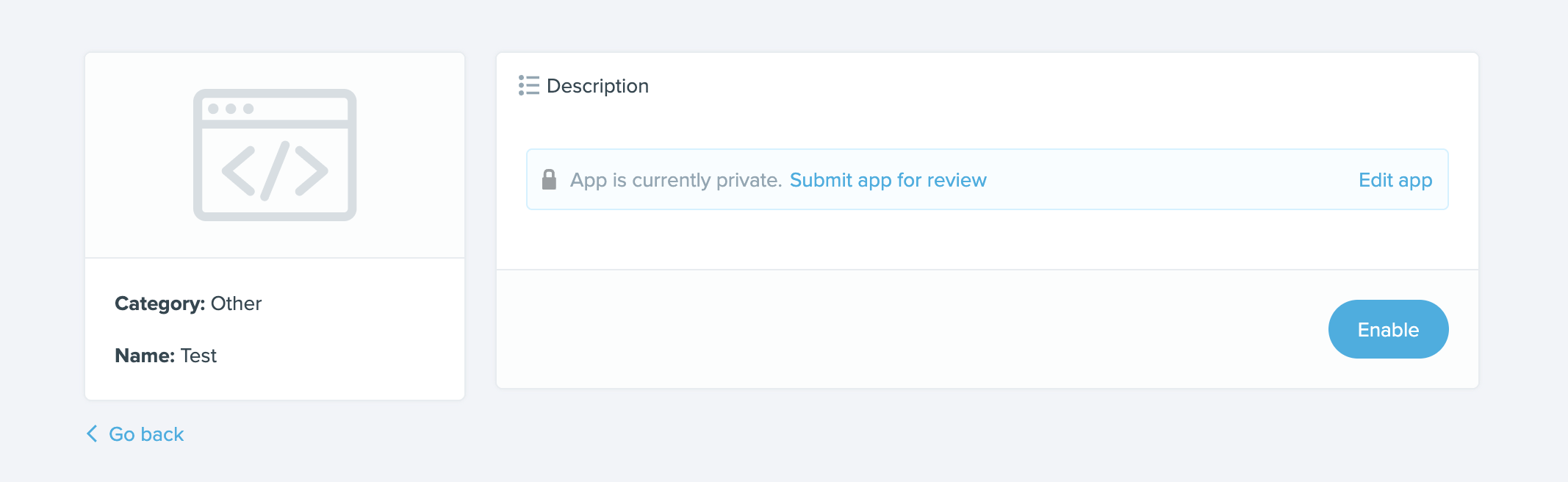 After saving the new embedded app, go back to the Integrations page and scroll down to the bottom. There, you’ll see the most recently created apps, look for the name of the one you just created.