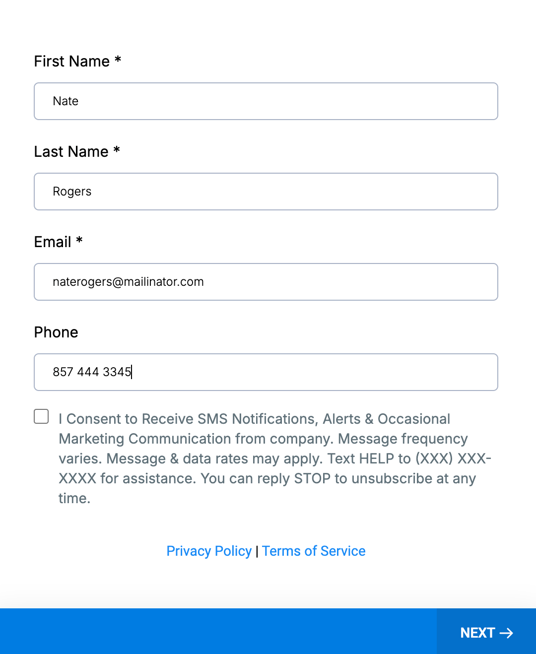 - Last Name (required)
