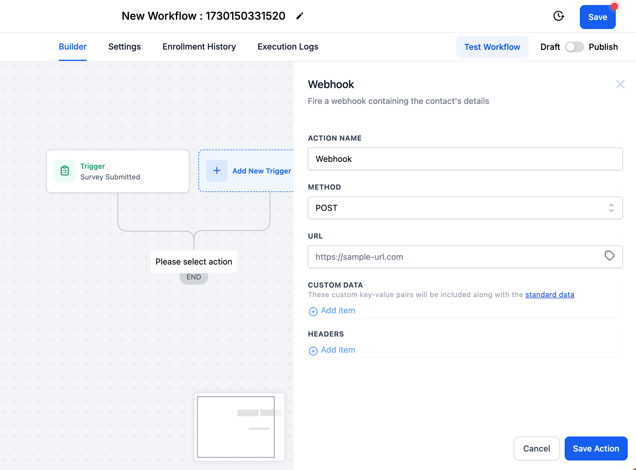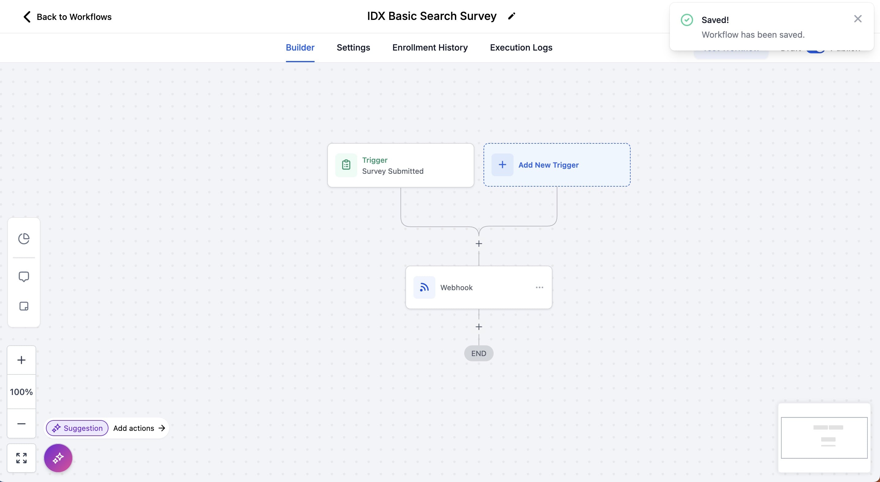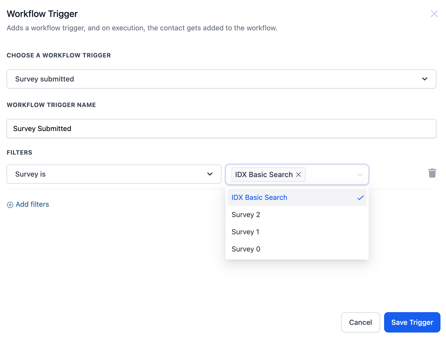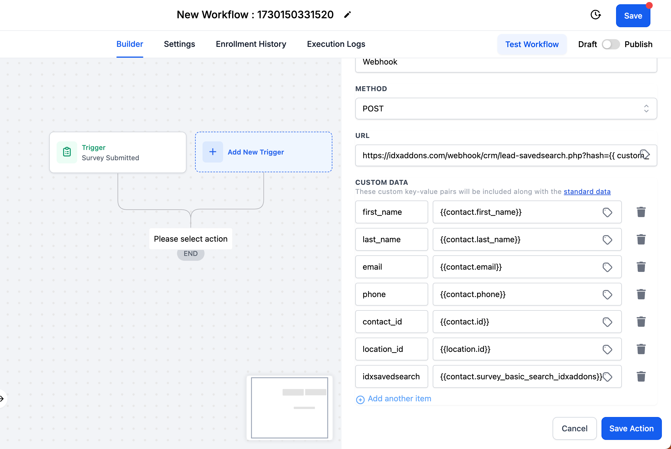 Now, we will create a workflow to send the GHL contacts to IDX Broker after the survey is submitted.