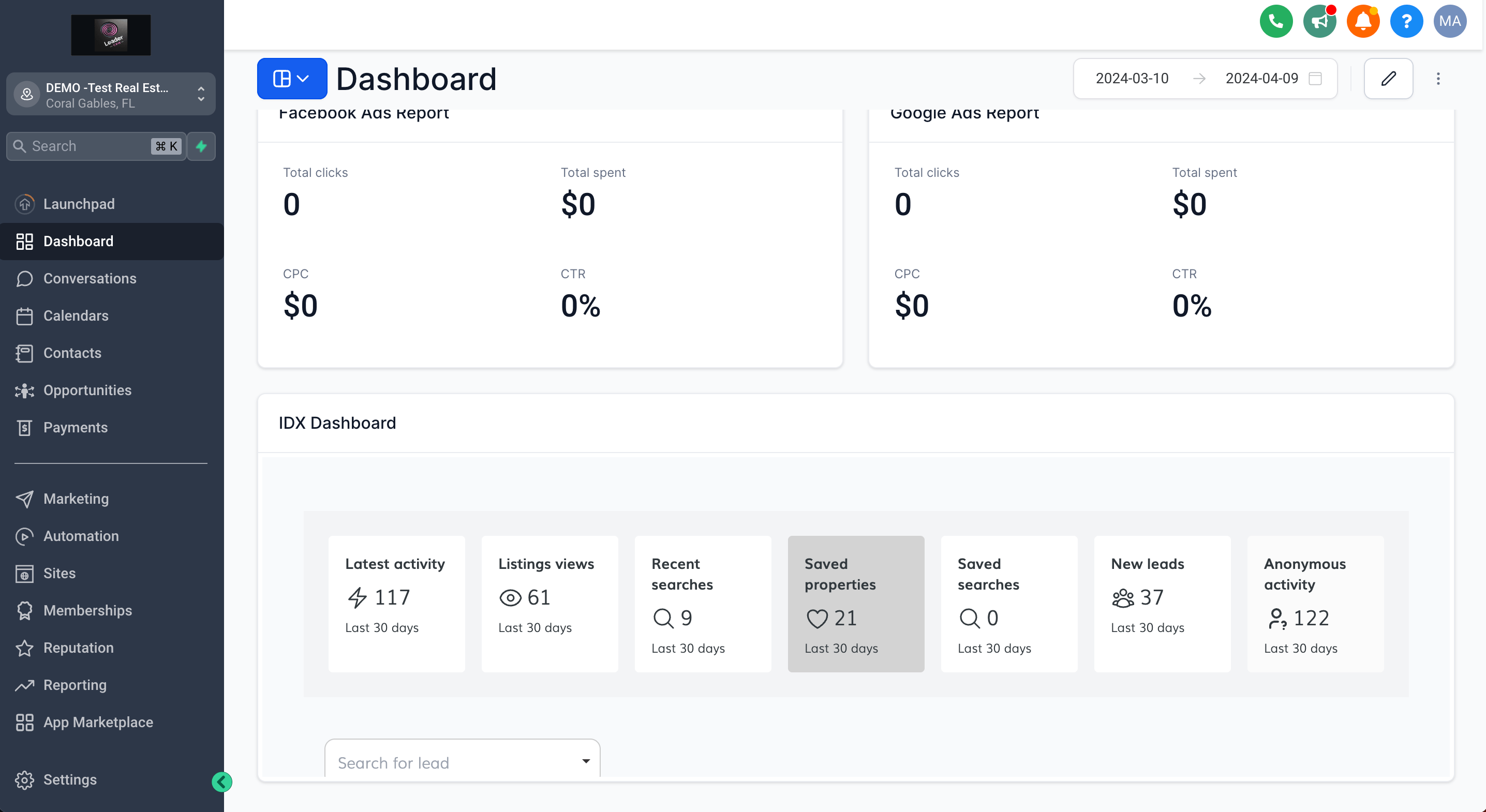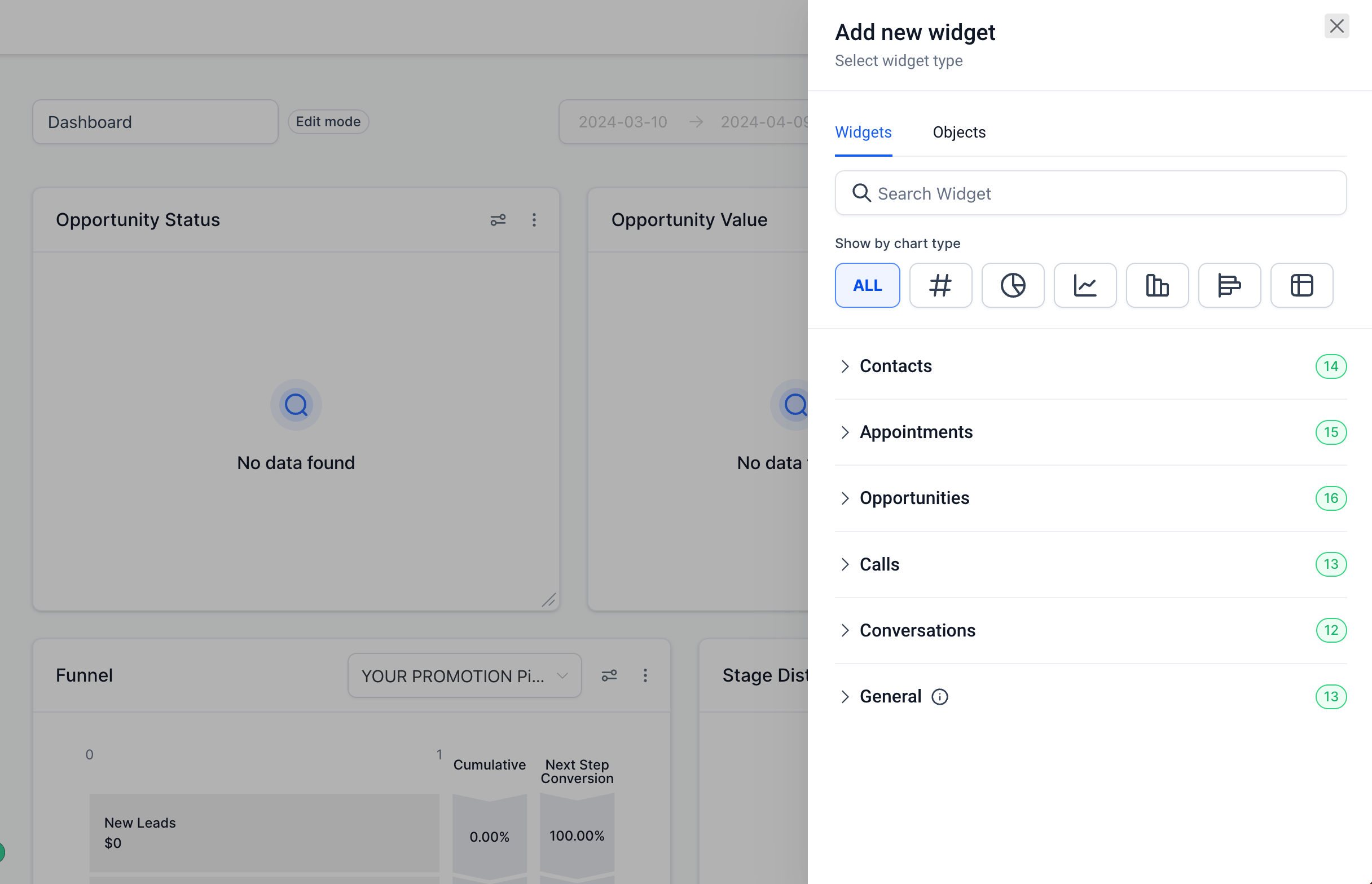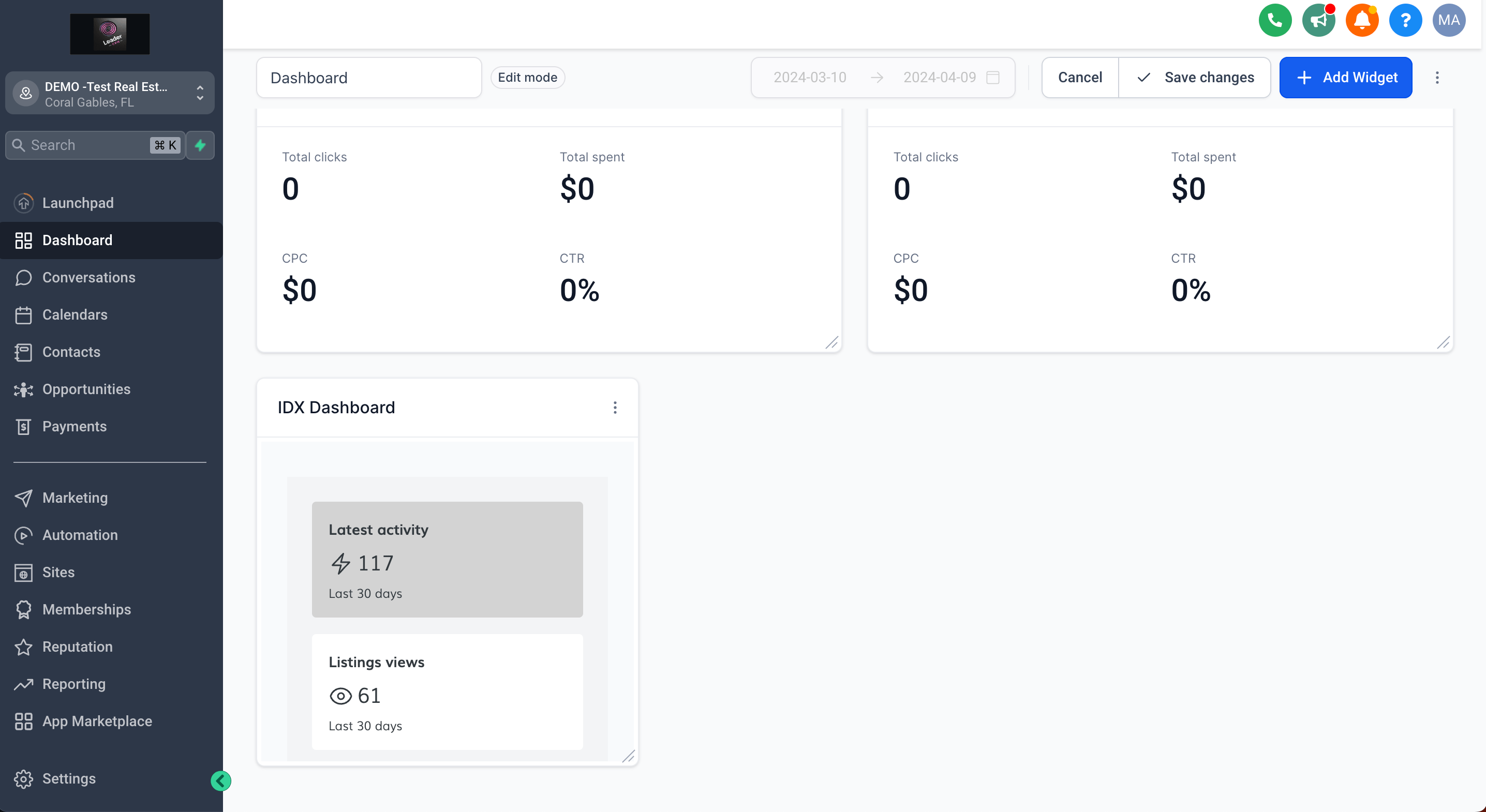 Save the widget settings and you will see the LeadConnector dashboard as a widget in HighLevel.