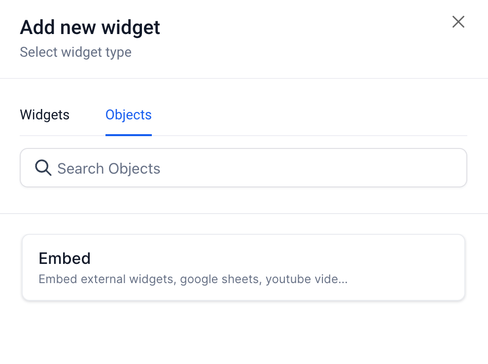 Select the "Objects" tab and click on "Embed".