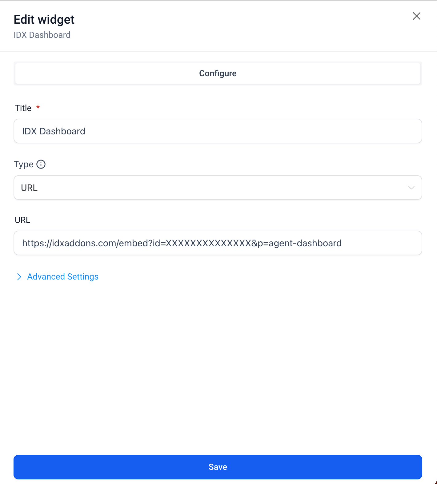 Enter a title for the widget and leave the Type as "URL".