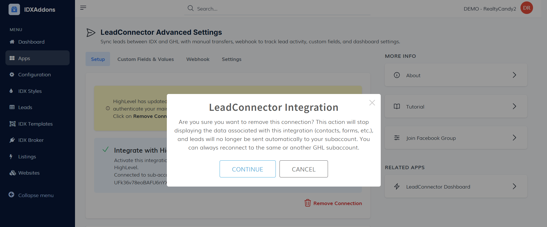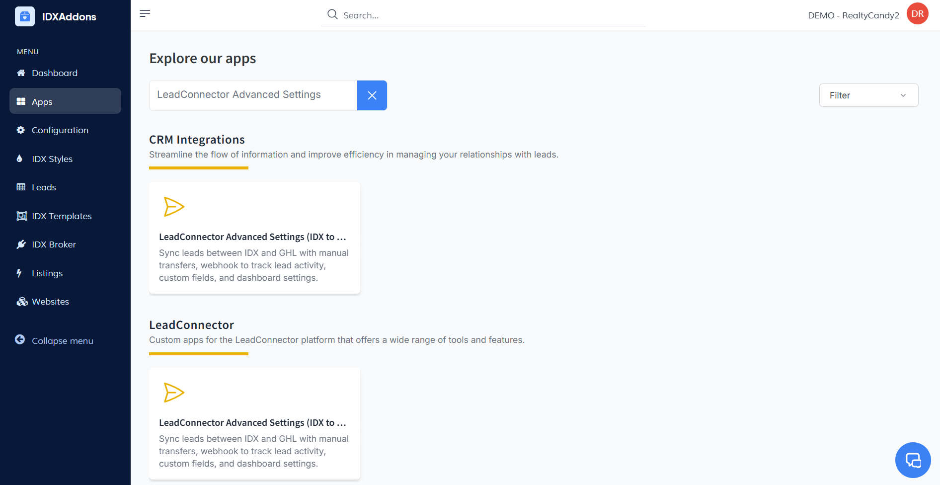 Enable the webhook to send your IDX leads, properties, and searches to LeadConnector.