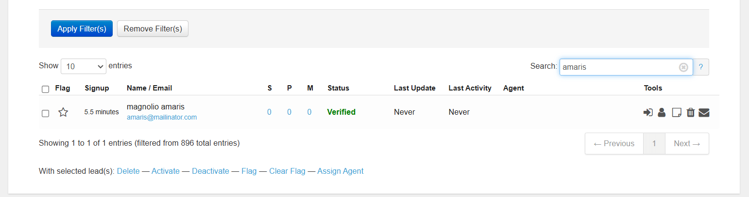 If the new lead does not appear in the table, click the Refresh button to ensure the data is updated and displayed correctly.