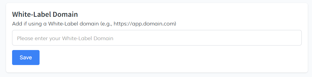 White-Label DomainIf you have a white-label domain, add it here and click the Save button.