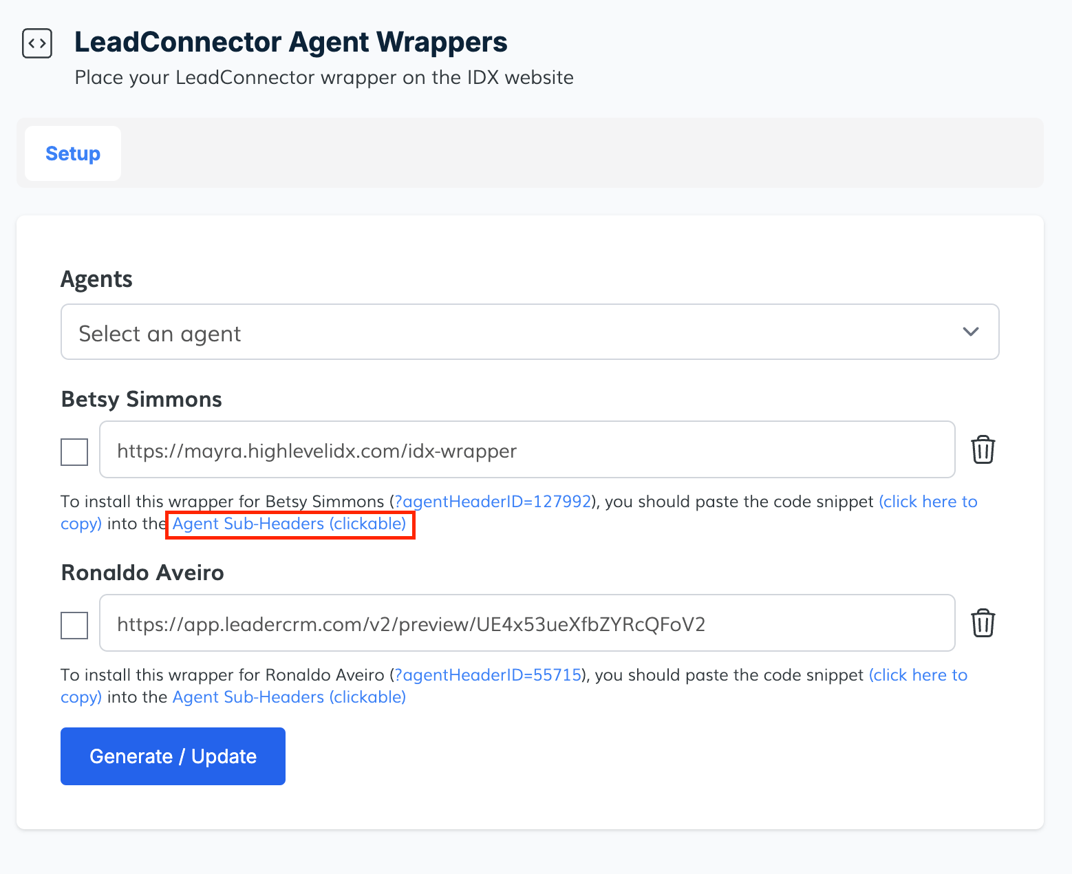 Now you have to paste the URL of the wrapper that you created in LeadConnector and click on the "Generate/Update" button.