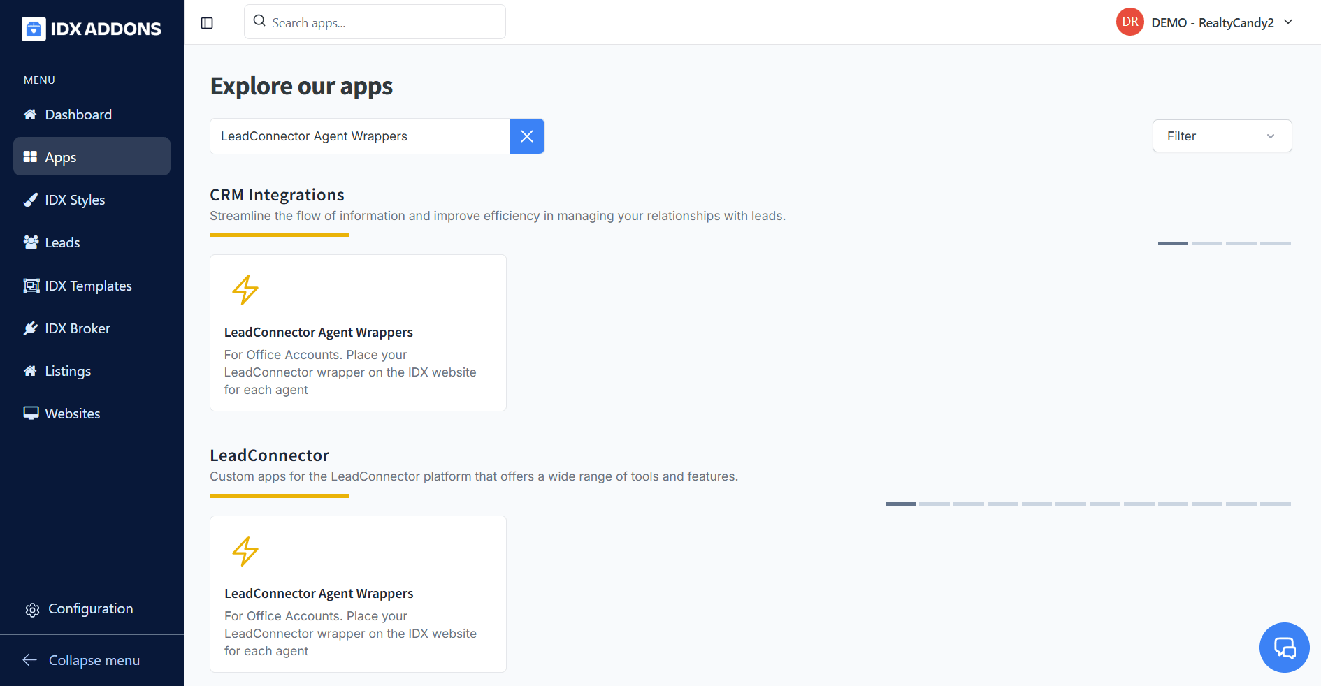 In the dashboard, select the LeadConnector Agent Wrappers app.