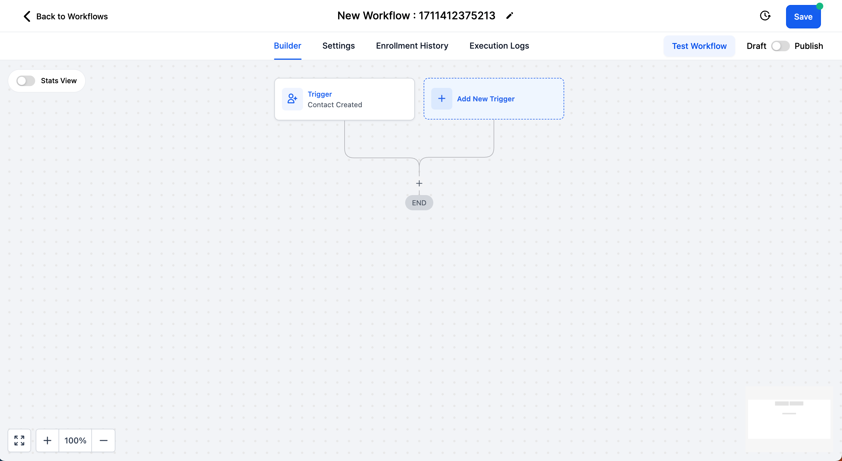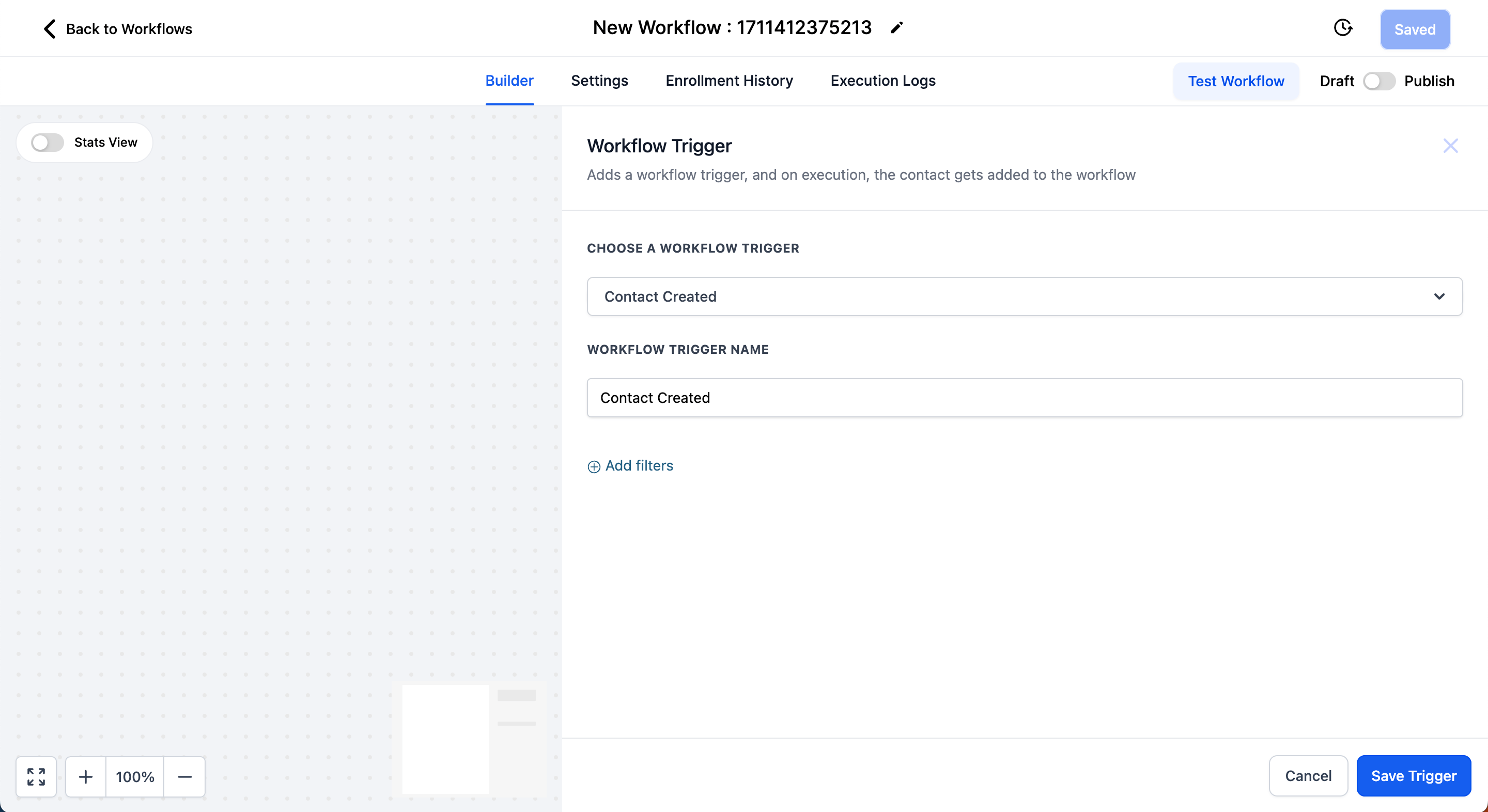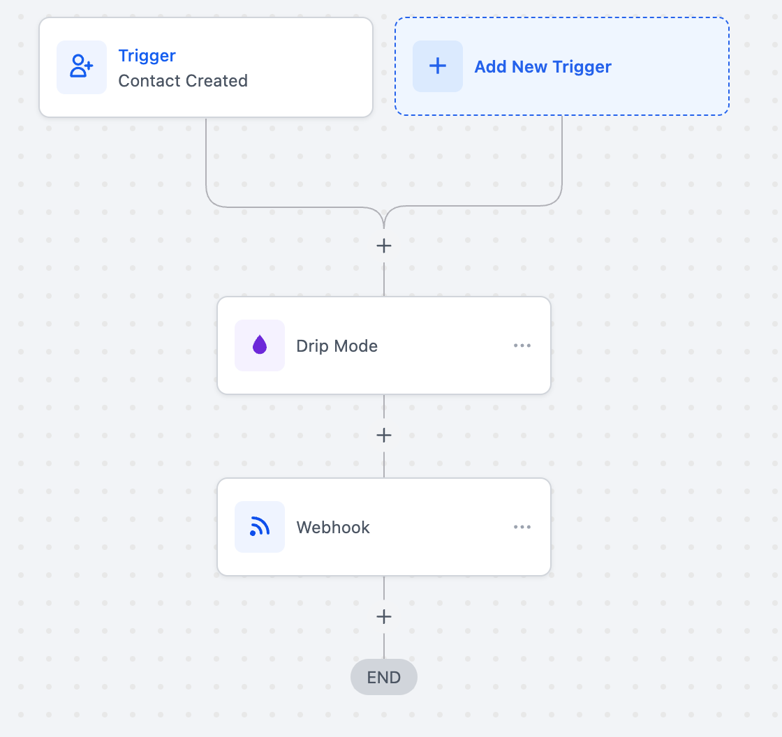 Click on "Add New Trigger", select "Contact Created" and click on "Save Trigger".