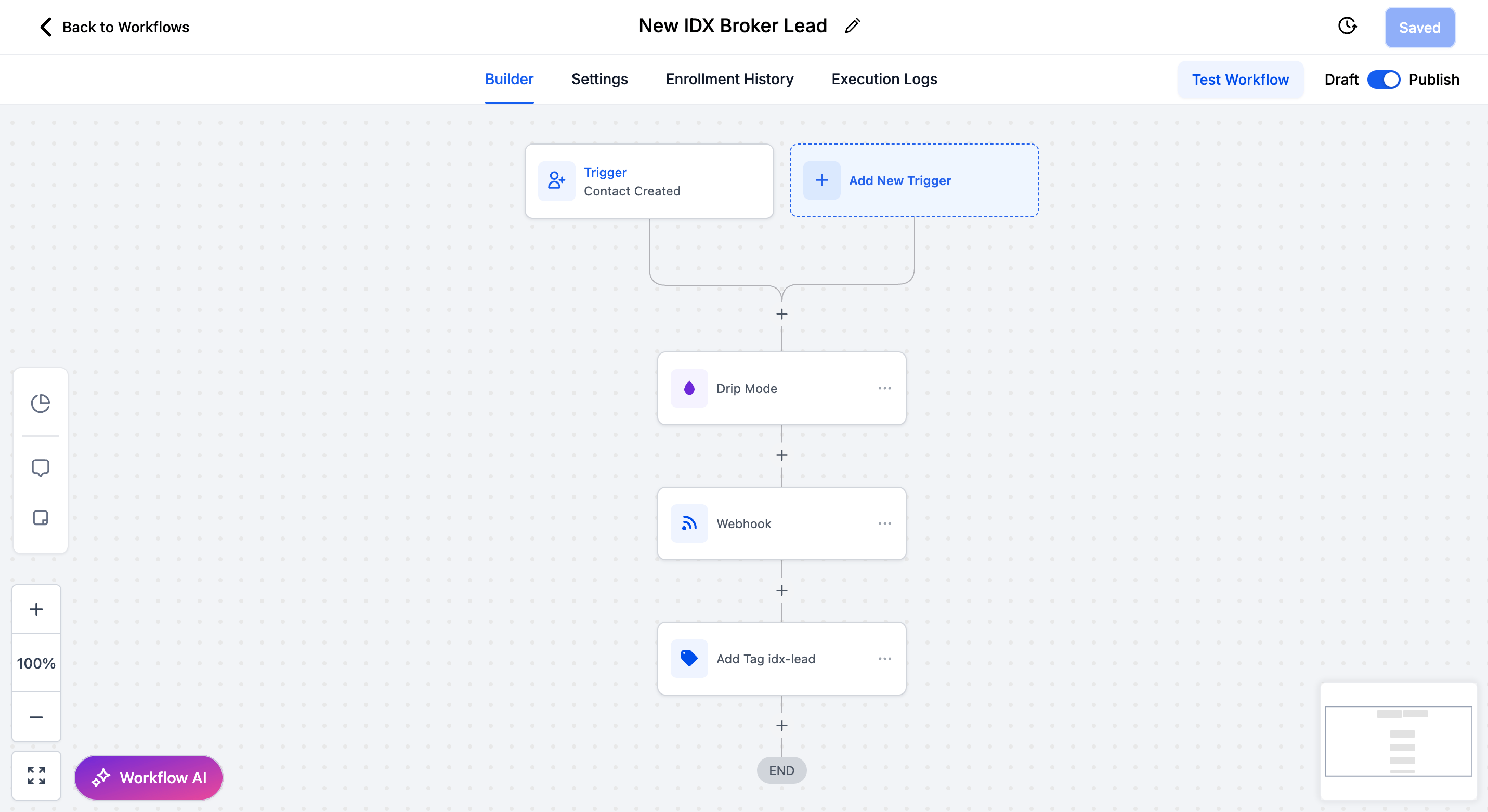 You can create a GHL form or survey to test the workflow. Or you can send the contacts directly to IDX Broker after adding an specific tag to the contact. Feel free to customize the workflow to fit your needs.