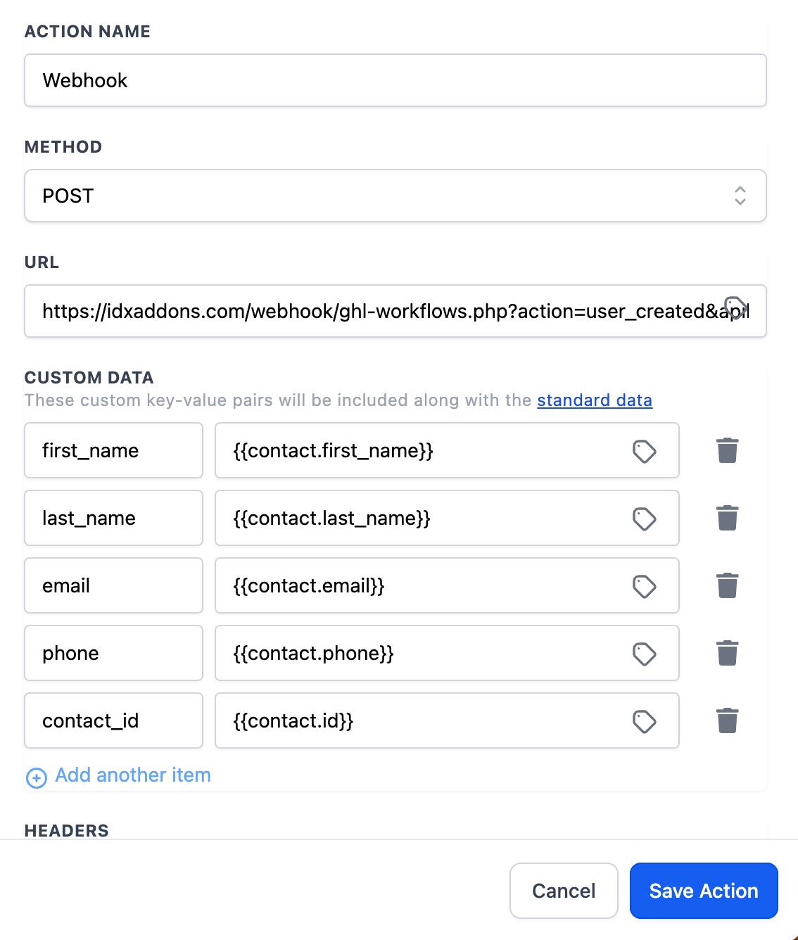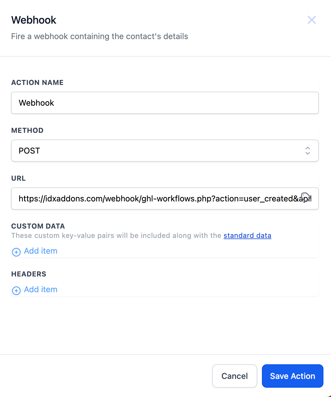 - Action Name: Webhook