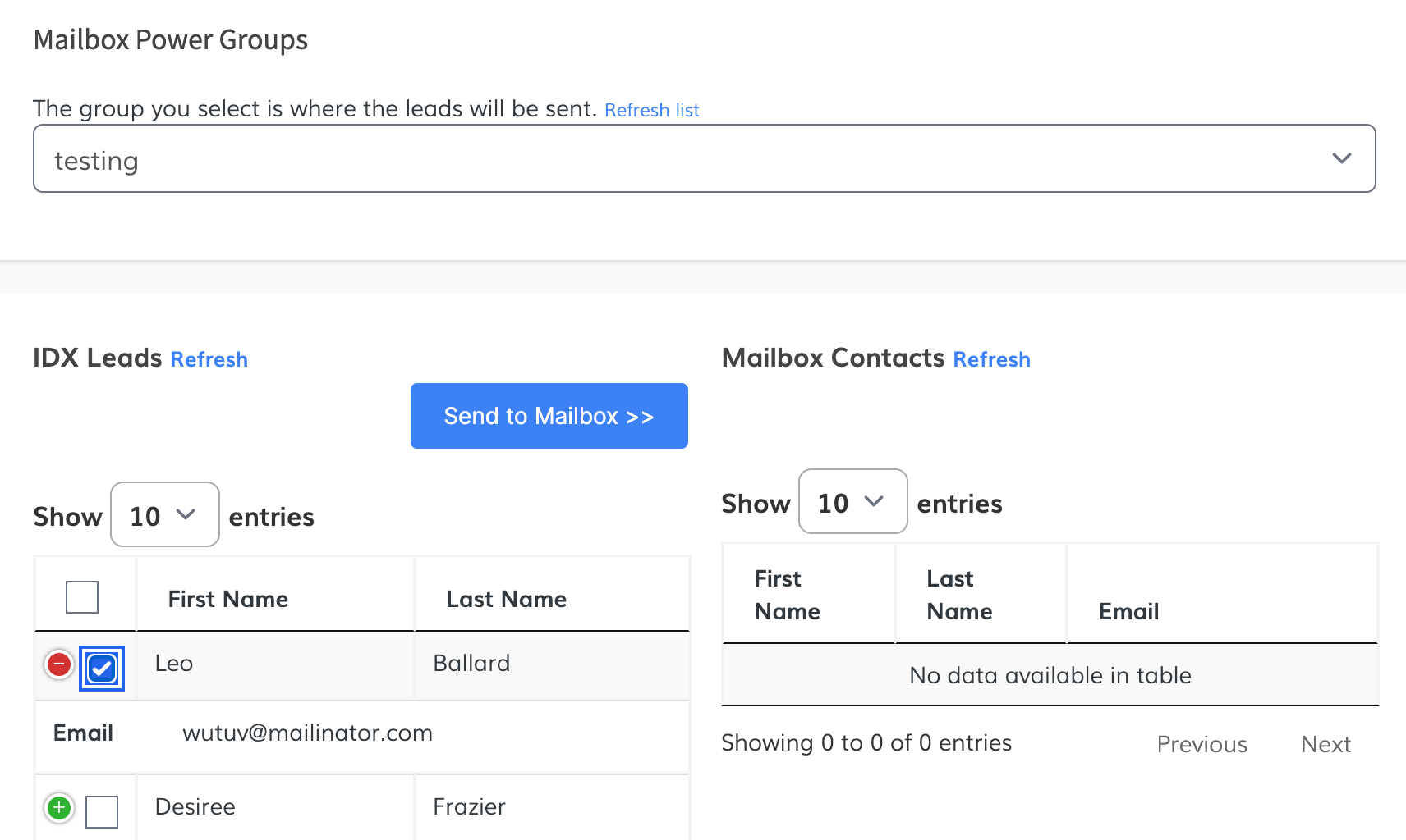 Manual: send IDX leads to a Mailbox Power group