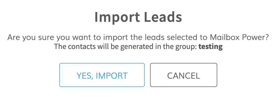 Confirm the action by clicking Yes, Import. If no group is selected, leads go to All Contacts.