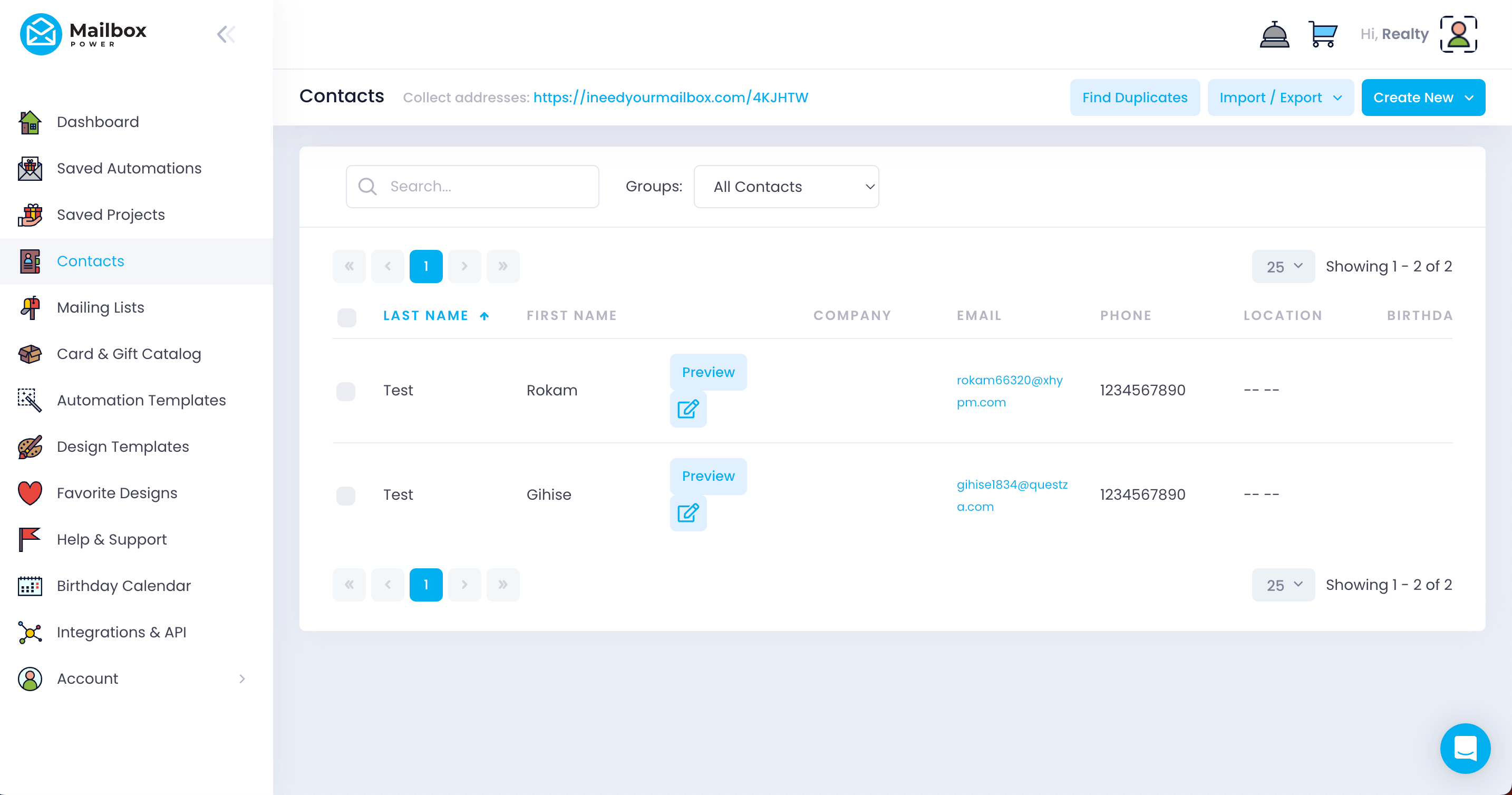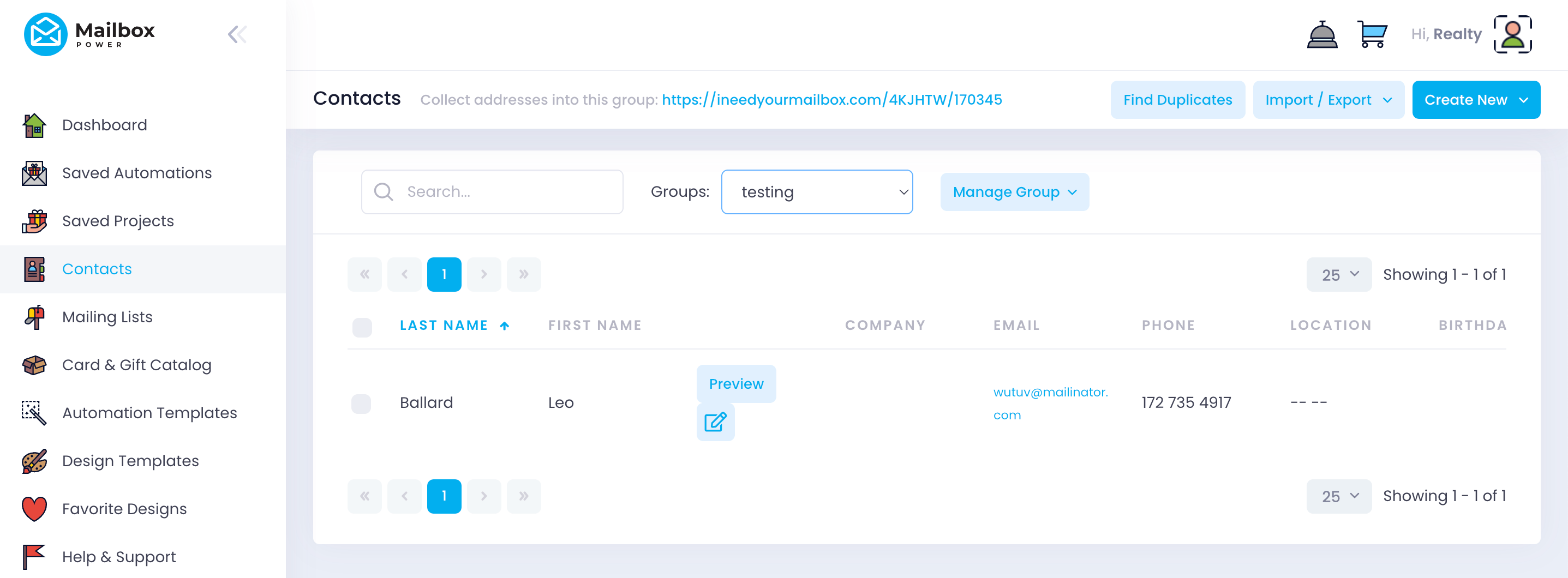 Once saved, new IDX leads are registered in real time in Mailbox Power, in the group configured in the app (defaults to “All Contacts” if none is selected).