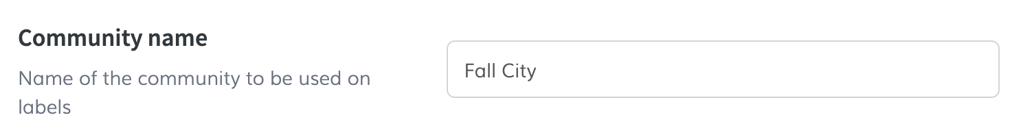 Enter the name of the community. This will be used on labels and some widgets.