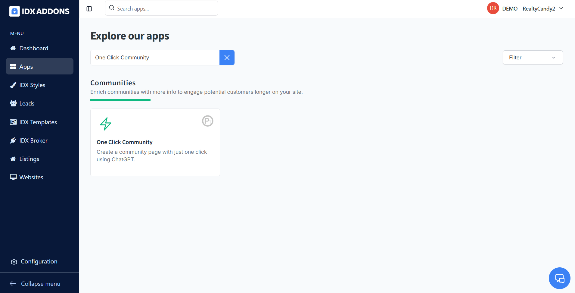 In IDXAddons, when you go to the One-Click Community page, it will show a form like the following: