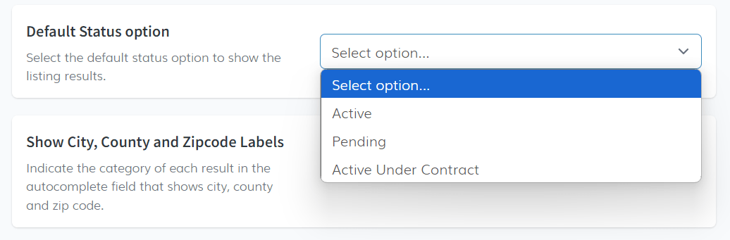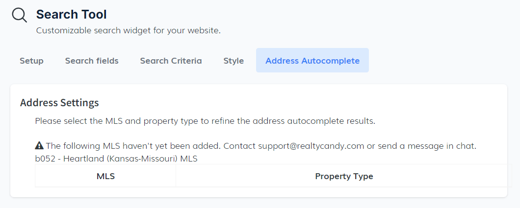 Address SettingsIn this section, you’ll be able to select the MLS and Property Type to ensure the address autocomplete feature provides accurate suggestions for your users.