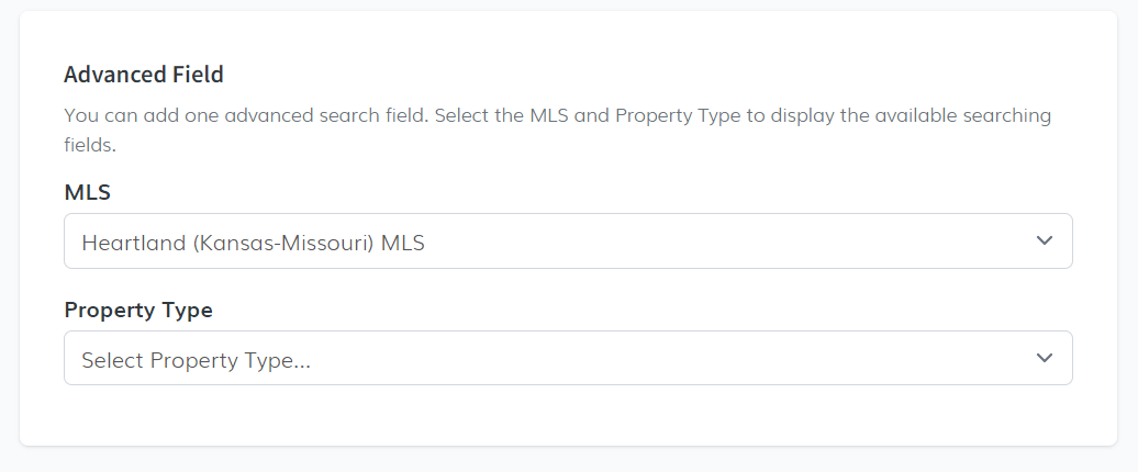 You can add one advanced search field by selecting the MLS and Property Type to display the available searching fields.