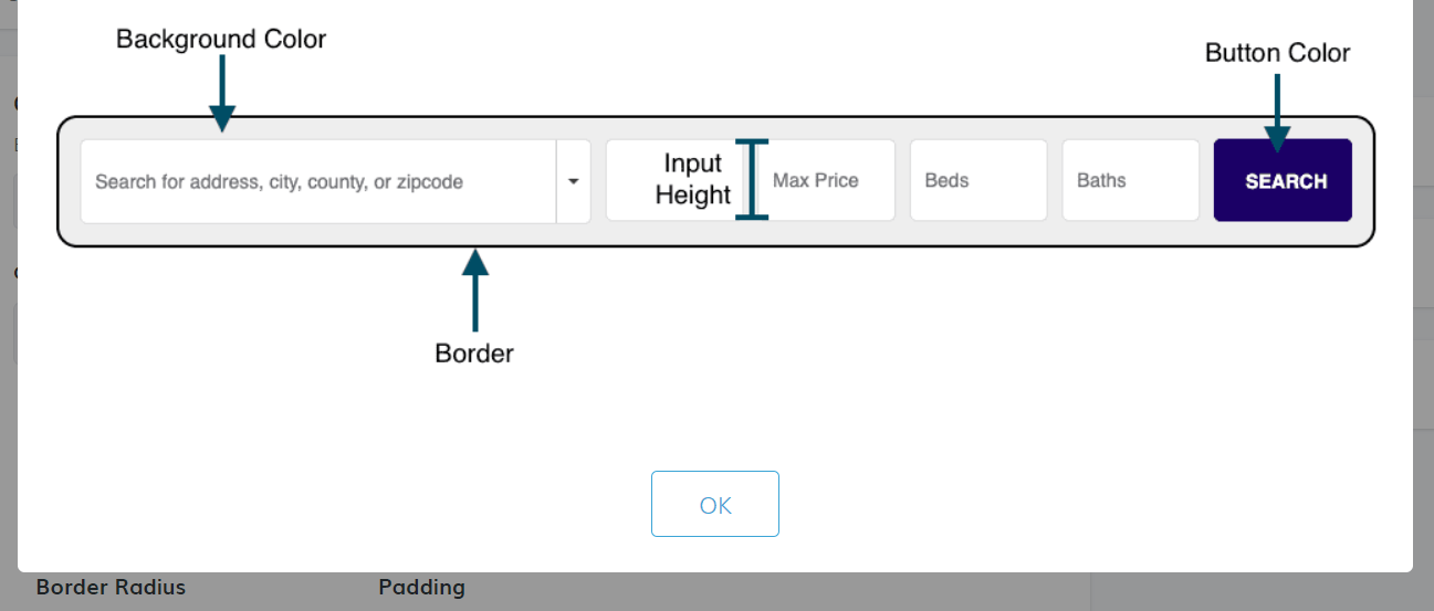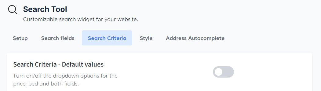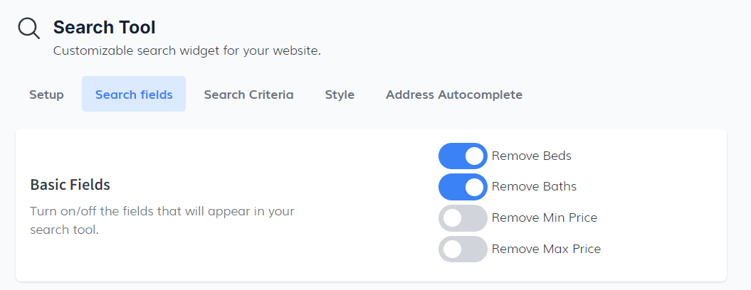 This section allows you to control whether the price, bed, and bath fields are shown as dropdown options in the search tool.