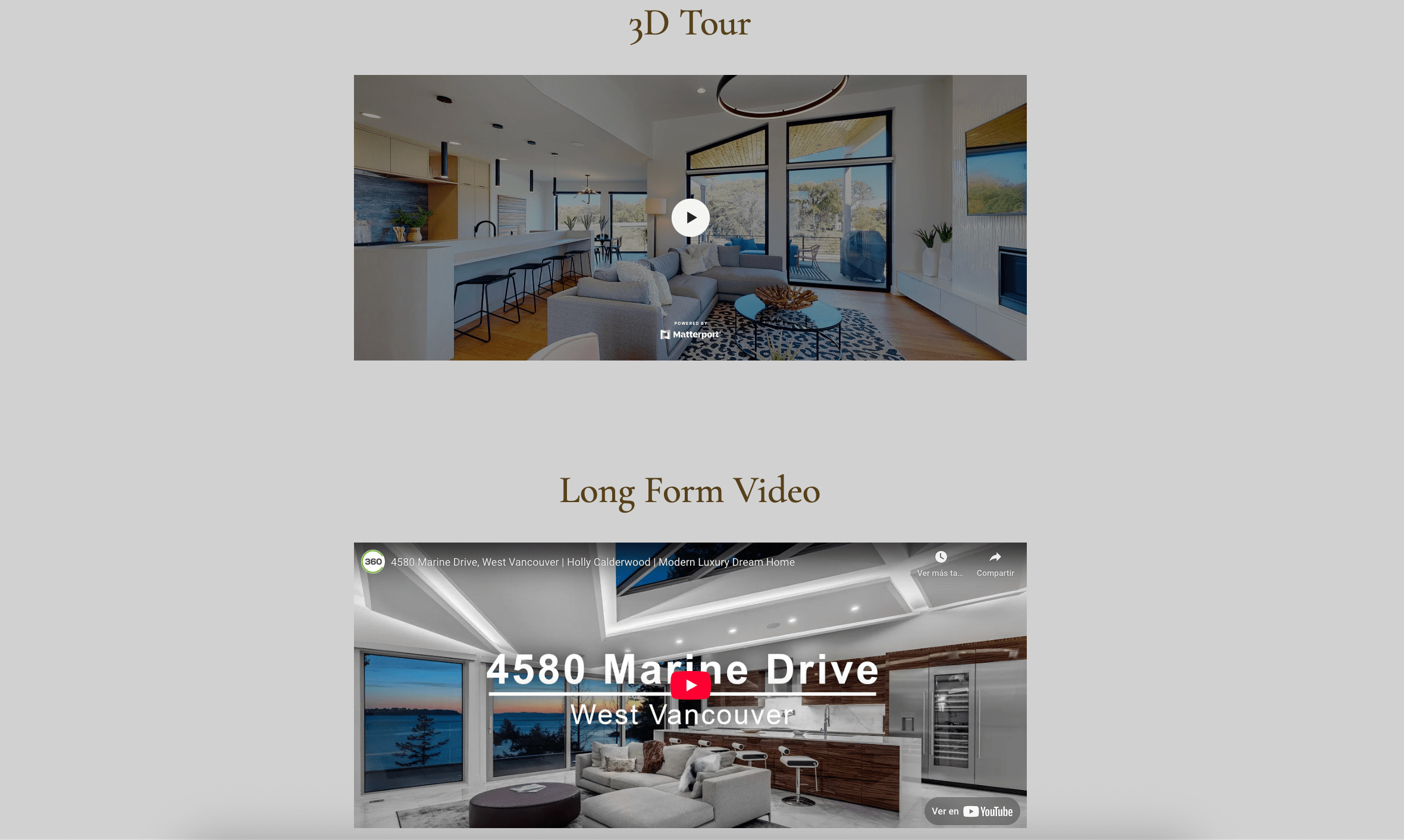 This is how the "3D Tour" and "Long-Form Video" look like on the page.